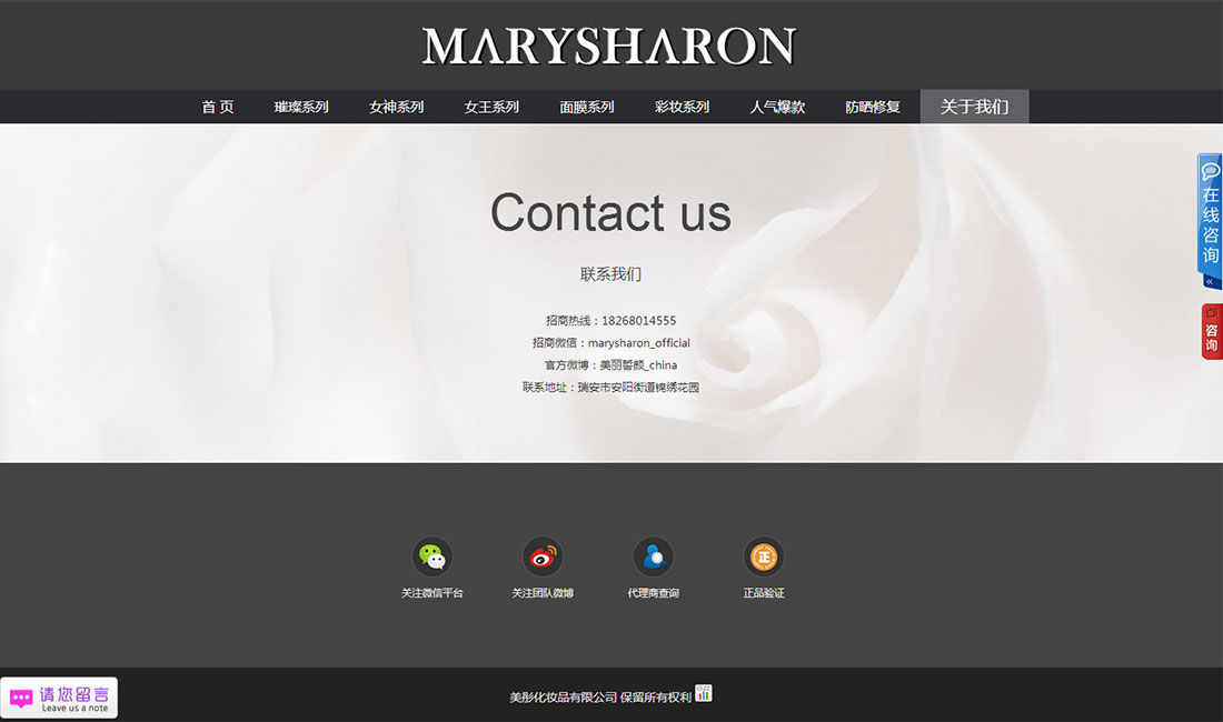 北京美丽誓颜美容护肤有限公司创建于2001年。公司是一家在房地产,金融投资,演艺事业,国际贸易,电子商务多个领域取得优秀成绩并有着共同梦想的年轻人共同创办.我们带着忠诚的职业道德和一流的生产技术,致力于不断满足客户的需求,极力挽救和创造完美皮肤留住女人青春,成就她们美丽的梦想,让每一个人都微笑面对生活。我们带着忠诚的职业道德和一流的生产技术,致力于不断满足客户的需求,极力挽救和创造完美皮肤留住女人青春,成就她们美丽的梦想,让每一个人都微笑面对生活。