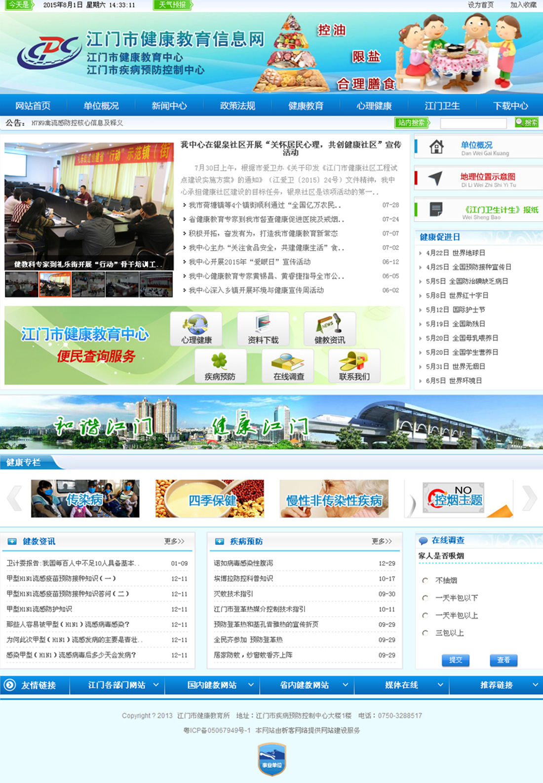 江门市疾病预防控制中心辖下内设机构(健康教育科,对外称“江门市健康教育中心”。)
