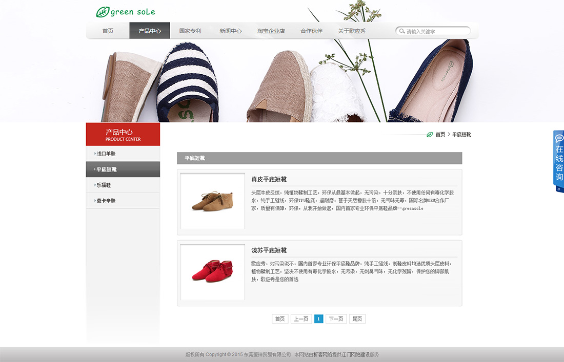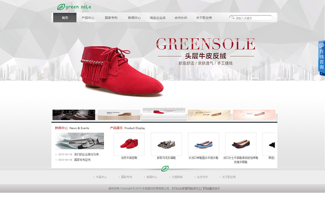 公司的直营工厂于1996年在东莞高埗镇创建,2014年正式我司推出全新女鞋品牌—greensole(中文译名为“歌应秀”)。释义为:绿色的鞋底。公司于2014年12月拿到了具有核心竞争力的环保缝线鞋专利证书,是国内首家拿到此项专利的唯一企业。歌应秀,纯手工缝线鞋类品牌,为环保尽力,减少对地球的污染,是我们共同的责任。歌应秀公司主要产品有0化学胶水缝线工艺平跟女鞋、人体PH值亲肤系列女鞋、缝线工艺休闲运动鞋。所有产品均选用环保工艺真皮、绿色TPU可循环利用鞋底,所有鞋子均承诺可达100%回收标准,回收鞋子用于公益捐赠或再回收利用做耐用生活品。