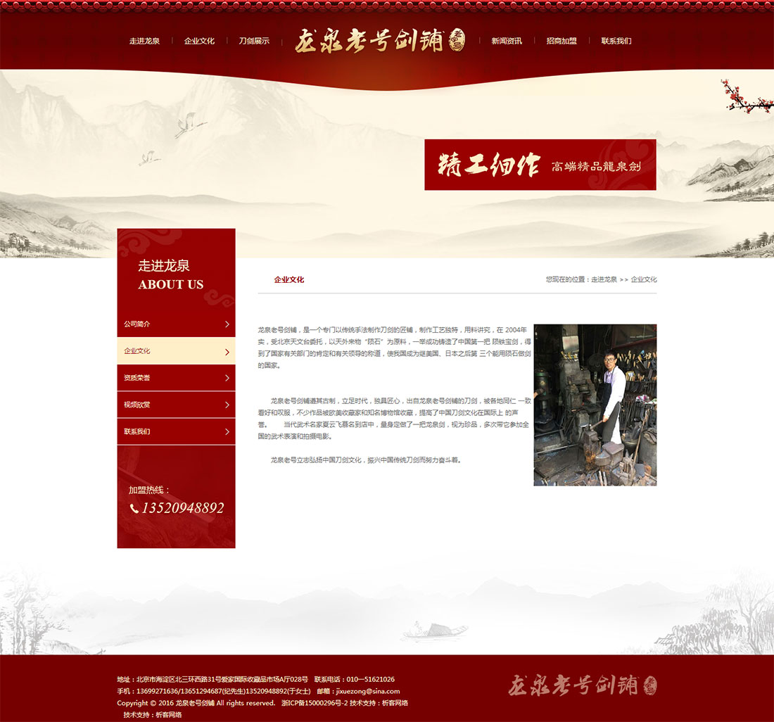 龙泉老号剑铺,是一个专门以传统手法制作刀剑的匠铺,制作工艺独特,用料讲究,在2004年实,受北京天文台委托,以天外来物“陨石”为原料,一举成功铸造了中国第一把陨铁宝剑,得到了国家有关部门的肯定和有关领导的称道,使我国成为继美国、日本之后第三个能用陨石做剑的国家。龙泉老号剑铺遵其古制,立足时代,独具匠心,出自龙泉老号剑铺的刀剑,被各地同仁一致看好和叹服,不少作品被欧美收藏家和知名博物馆收藏,提高了中国刀剑文化在国际上的声誉。当代武术名家夏云飞慕名到店中,量身定做了一把龙泉剑,视为珍品,多次带它参加全国的武术表演和拍摄电影。龙泉老号立志弘扬中国刀剑文化,振兴中国传统刀剑而努力奋斗着。