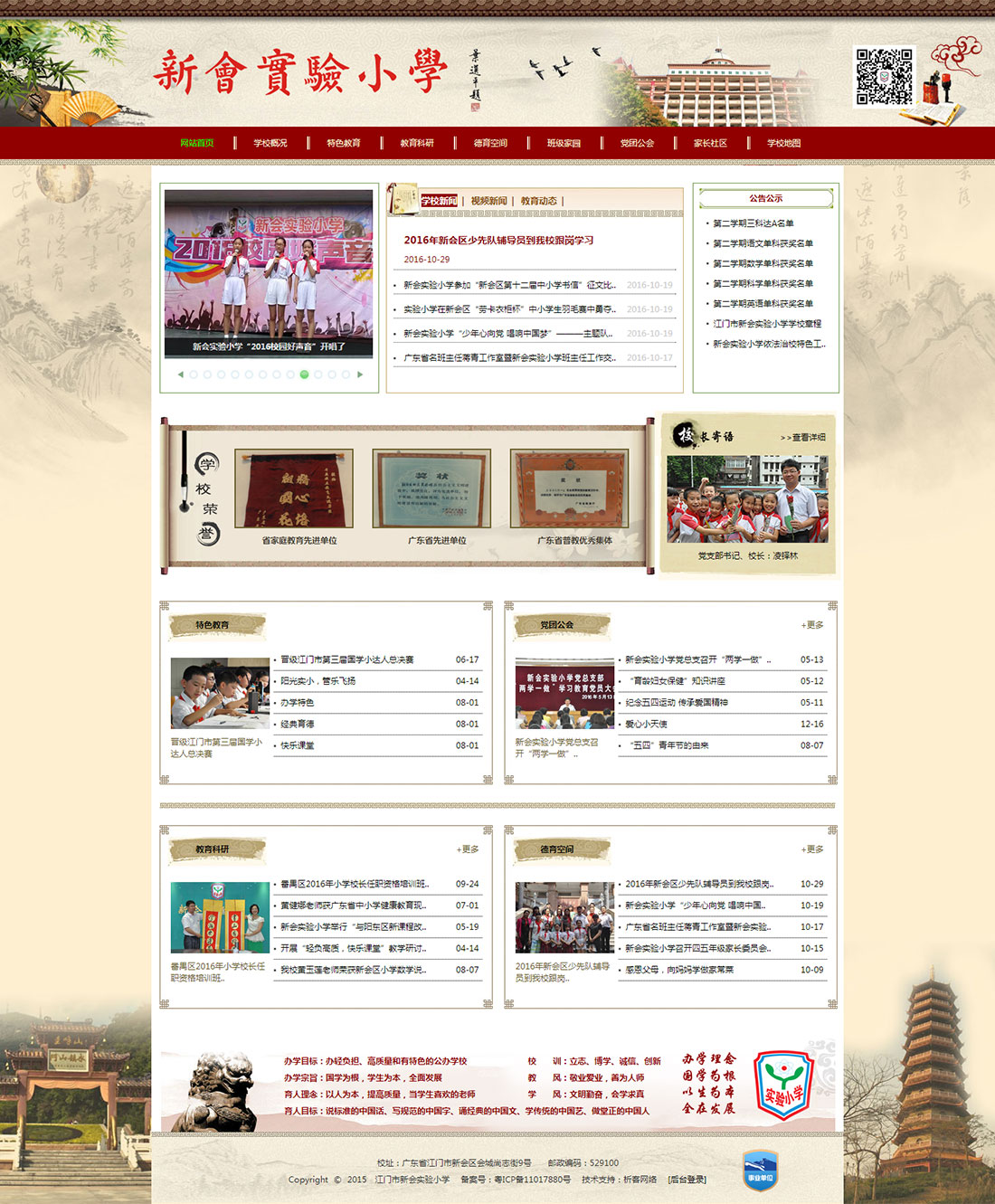 江门市新会实验小学,创办于清朝光绪三十二年(1906 年),后改办为尚书坊何族初等小学堂,民国期间改称文懿小学。建国后,曾先后称东风小学、会城镇第一小学、新会师范实验小学等校名,1985年定名为新会实验小学,直属于江门市新会区教育局,1994年被评为首批广东省一级学校,是新会少有的百年学校之一,是一所历史长、环境美、校风好、质量高的示范性学校。 新会实验小学正立足现在,展望未来,正踏上新世纪的征途,努力为社会提供更好的优质教育。