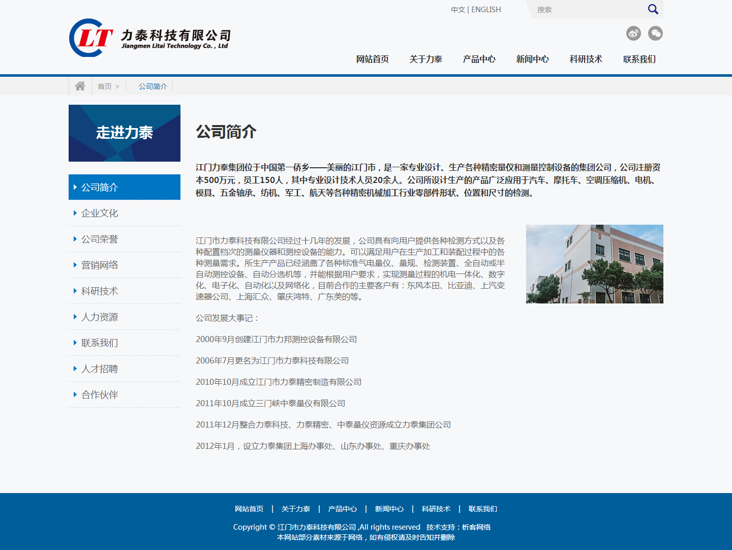 江门力泰集团位于中国第一侨乡——美丽的江门市,是一家专业设计、生产各种精密量仪和测量控制设备的集团公司,公司注册资本500万元,员工150人,其中专业设计技术人员20余人。公司所设计生产的产品广泛应用于汽车、摩托车、空调压缩机、电机、模具、五金轴承、纺机、军工、航天等各种精密机械加工行业零部件形状、位置和尺寸的检测。