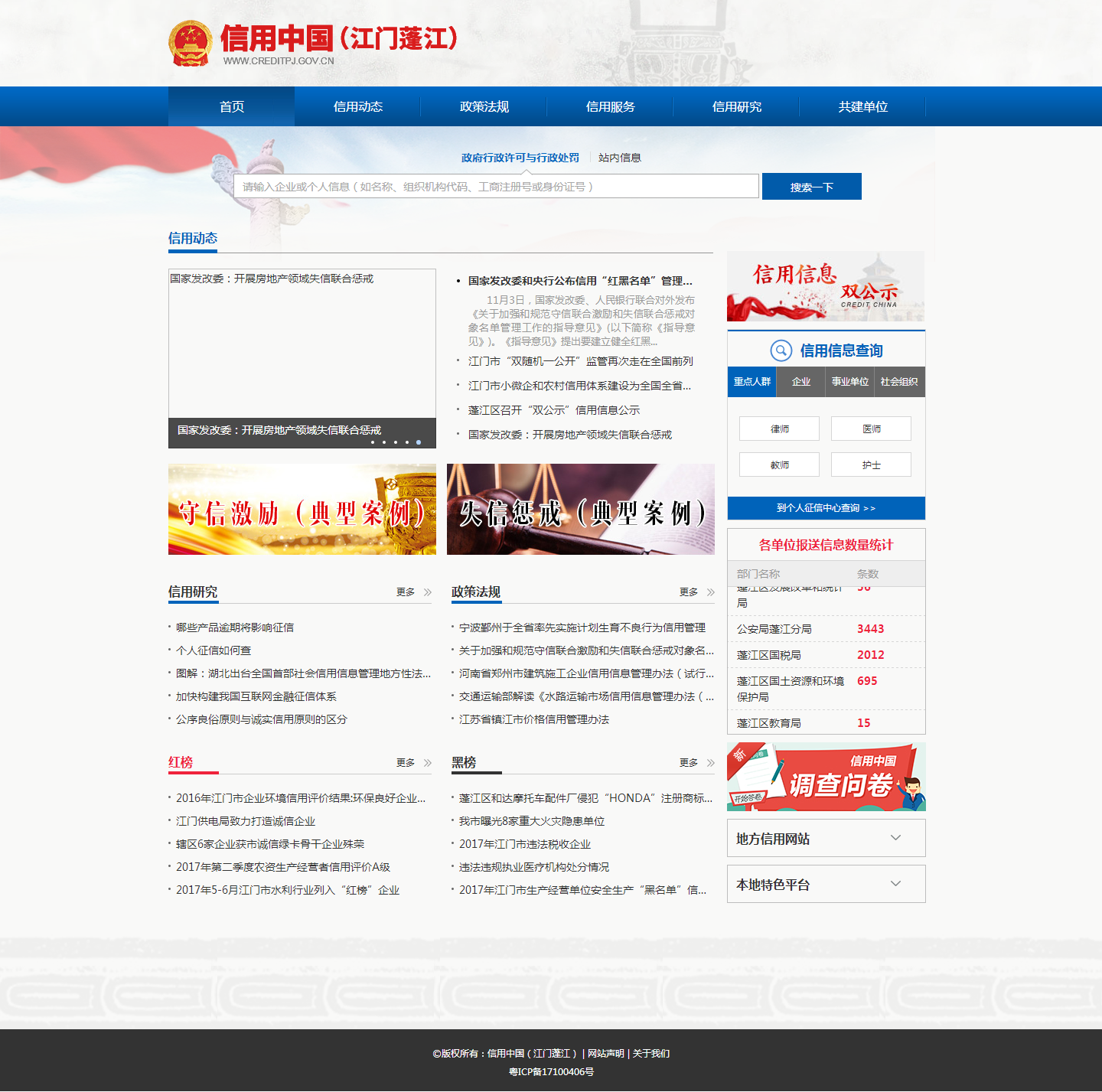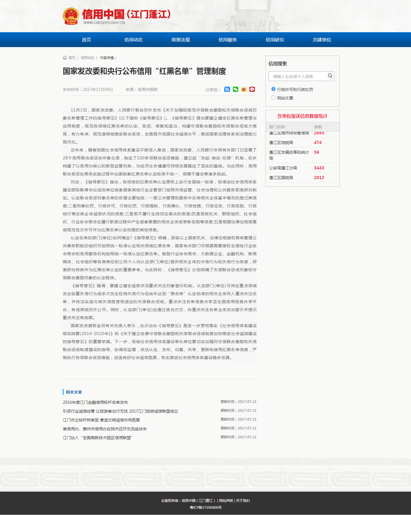 “信用中国”网站由国家发展改革委、人民银行指导,国家信息中心主办,百度公司提供技术支持和运维,是政府褒扬诚信、惩戒失信的总窗口。