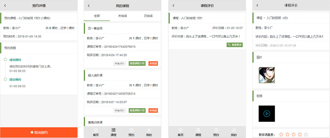 微信预约评价开发,课程预约系统设计,前端及程序制作
