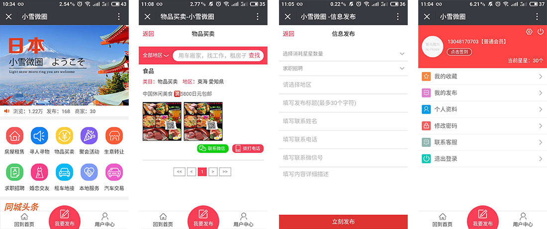 小雪微圈分类信息平台为城市居民提供生活分类信息发布和分享平台,可以浏览和发布房产、二手买卖、招聘信息等等。