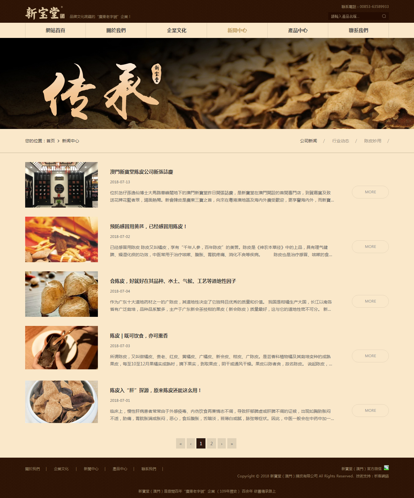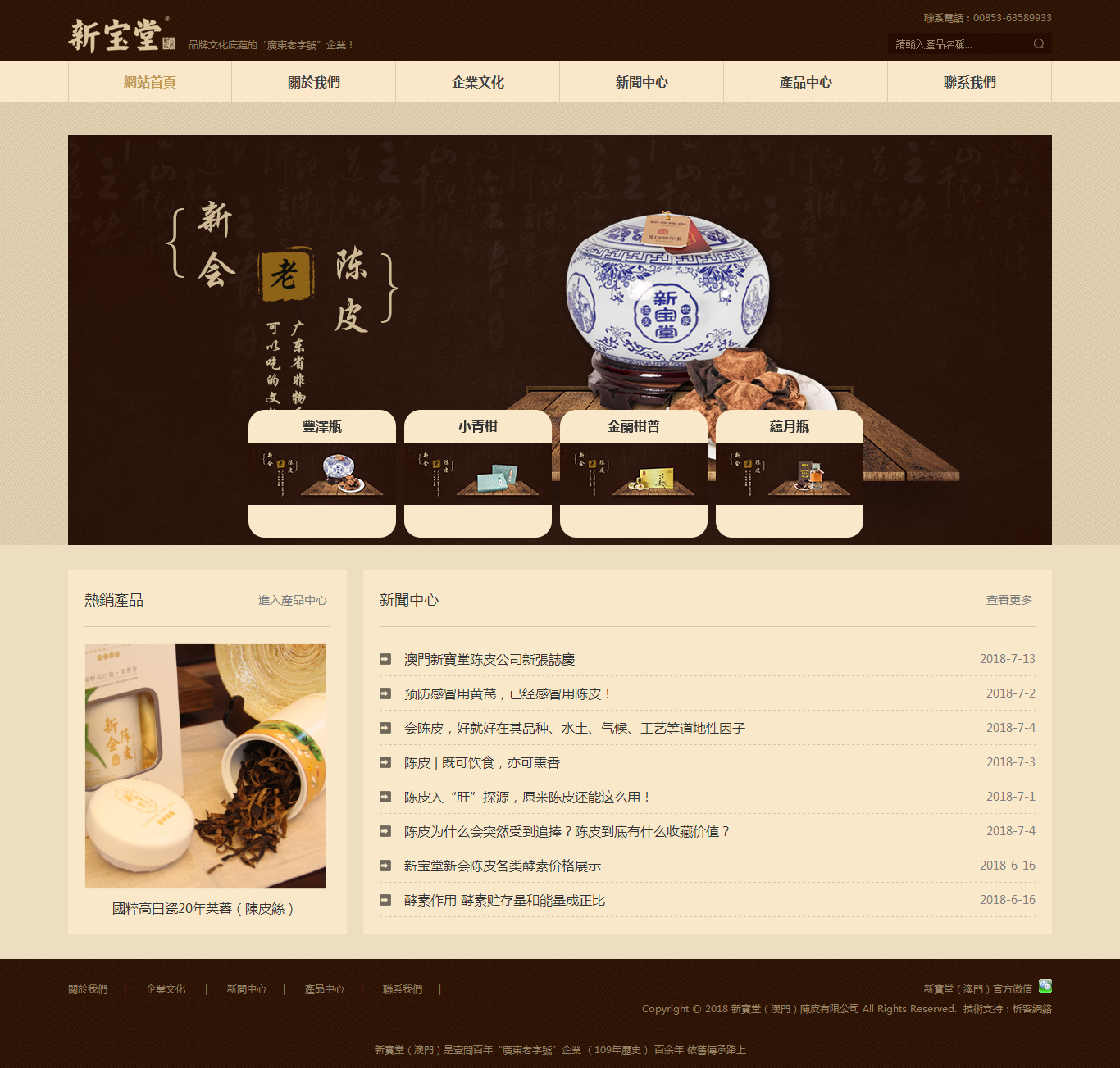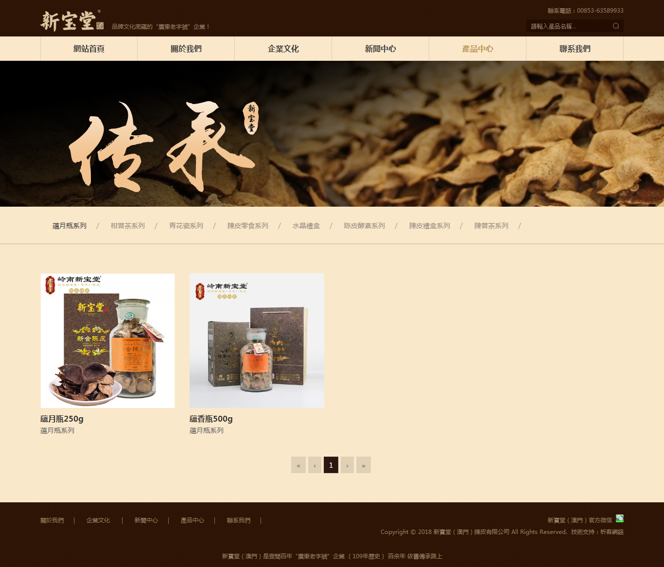 新宝堂创立于光绪三十四年(公元1908年),是壹家有109年历史、具有深厚品牌文化底蕴的“广东老字号”企业,是广东省非物质文化遗产“新会陈皮制作技艺”传承人单位和省级非物质文化遗产生产性保护示范基地,科技孵化基地,研发加工基地。新宝堂(澳门)陈皮有限公司是陈皮行业历史上第1家海外陈皮专卖店,专营新宝堂陈皮系列产品。