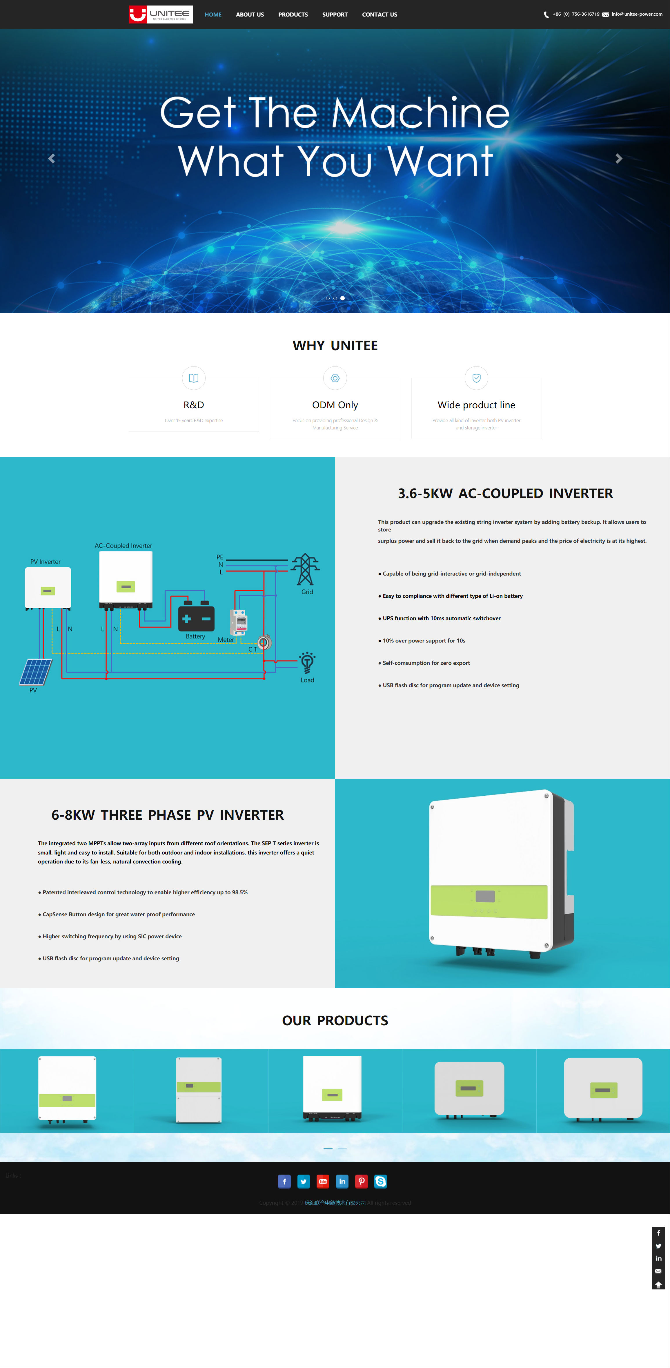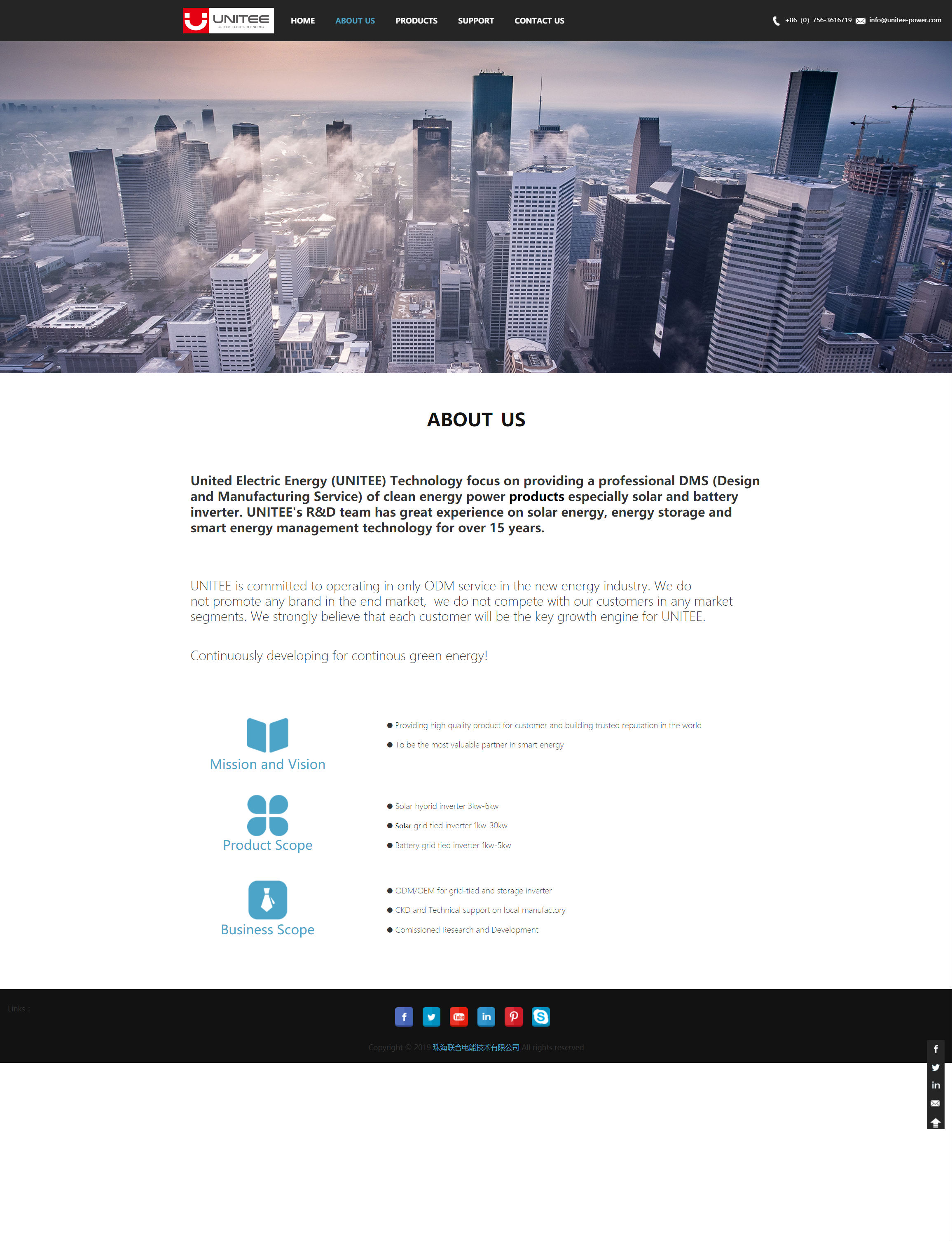 United Electric Energy (UNITEE) Technology focus on providing a professional DMS (Design and Manufacturing Service) of clean energy power products especially solar and battery inverter. UNITEE's R&D team has great experience on solar energy, energy storage and smart energy management technology for over 15 years.