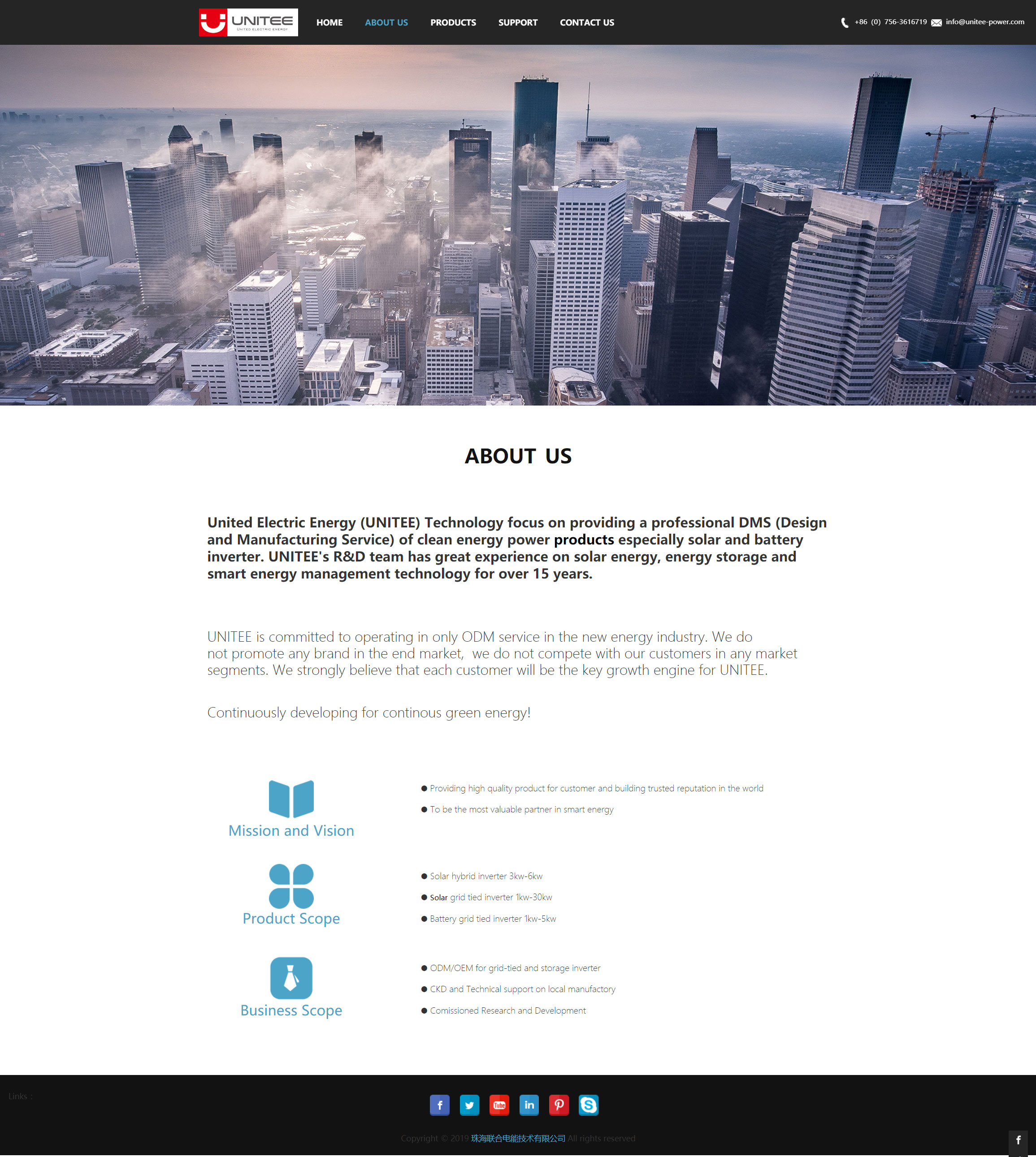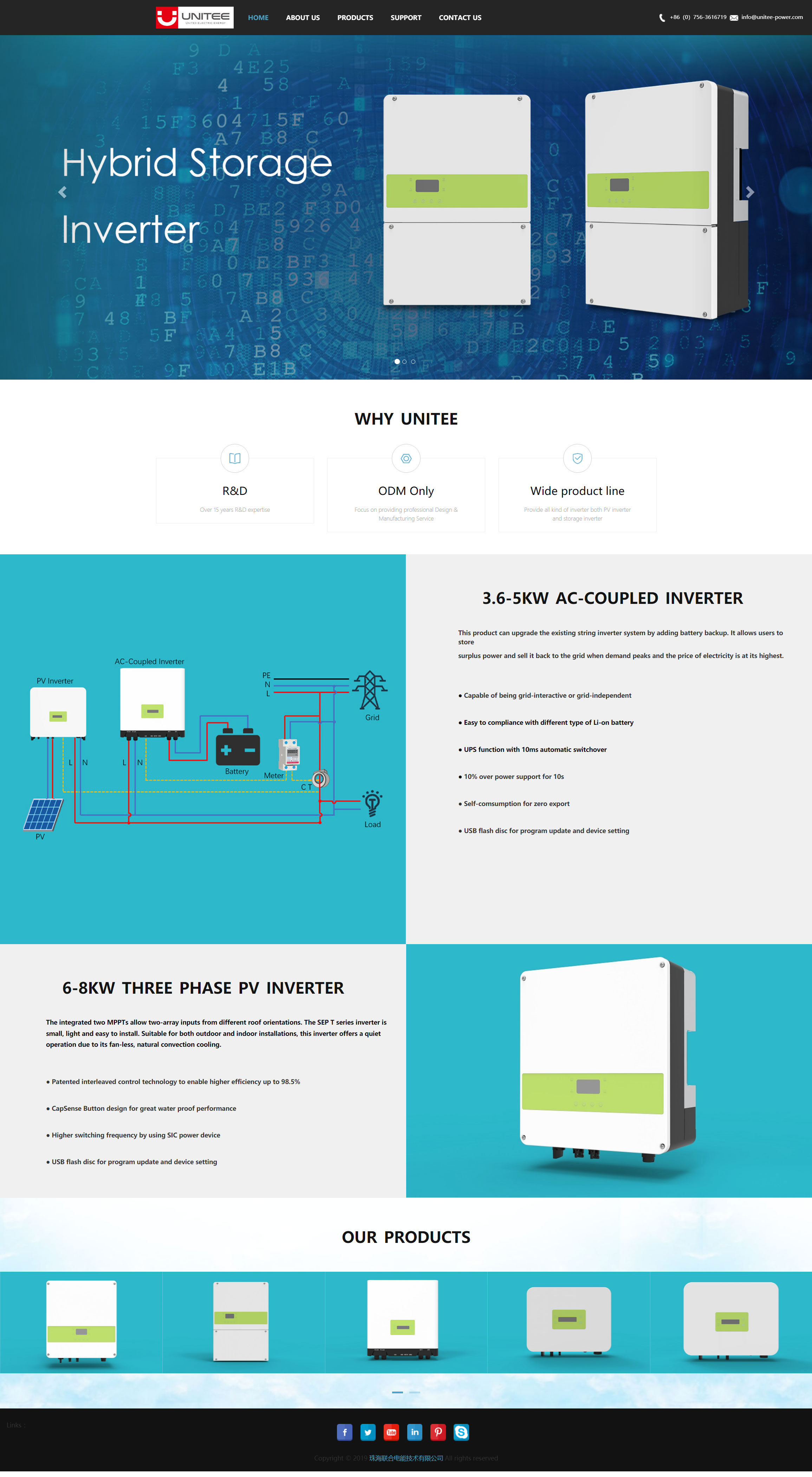 United Electric Energy (UNITEE) Technology focus on providing a professional DMS (Design and Manufacturing Service) of clean energy power products especially solar and battery inverter. UNITEE's R&D team has great experience on solar energy, energy storage and smart energy management technology for over 15 years.