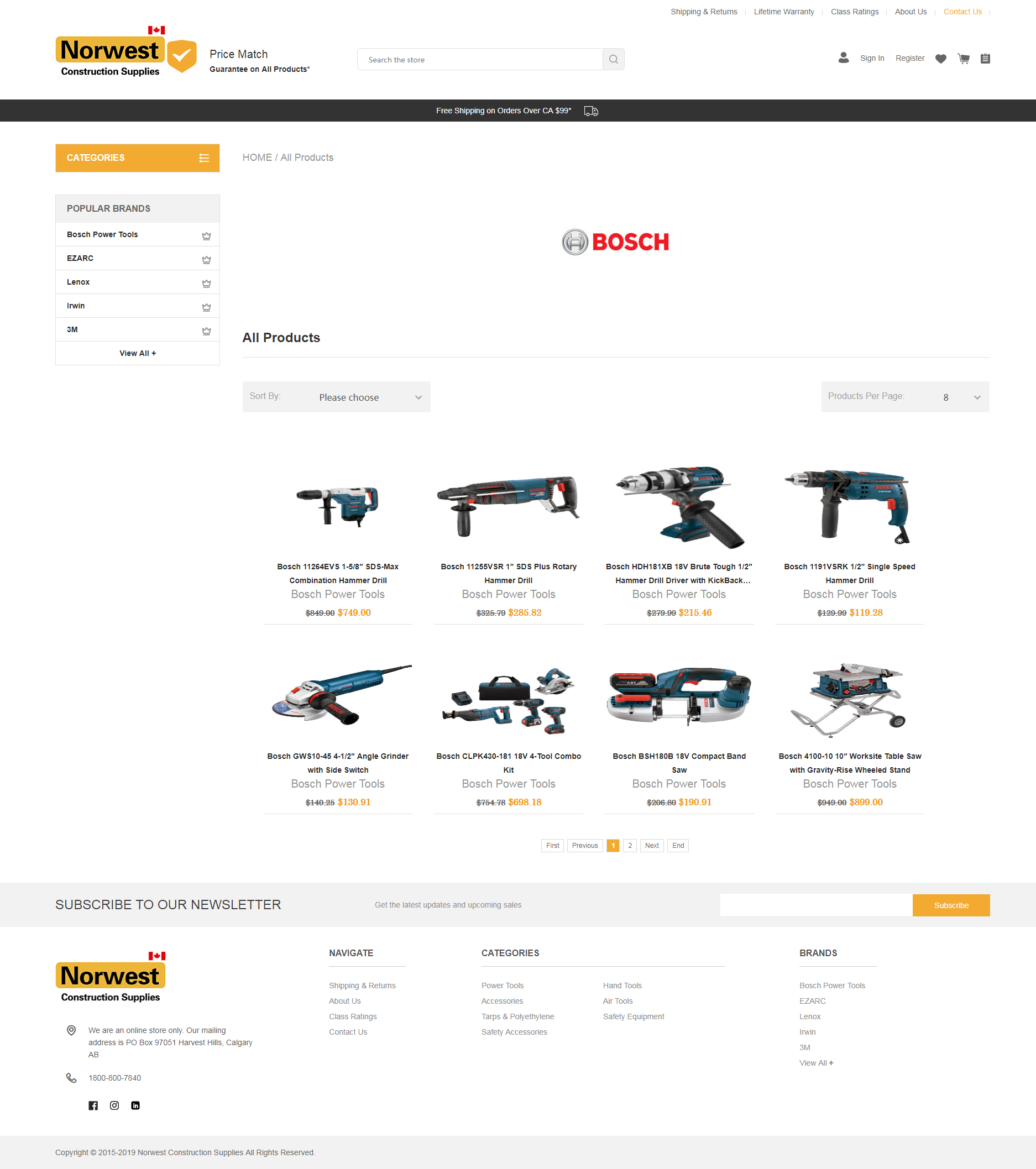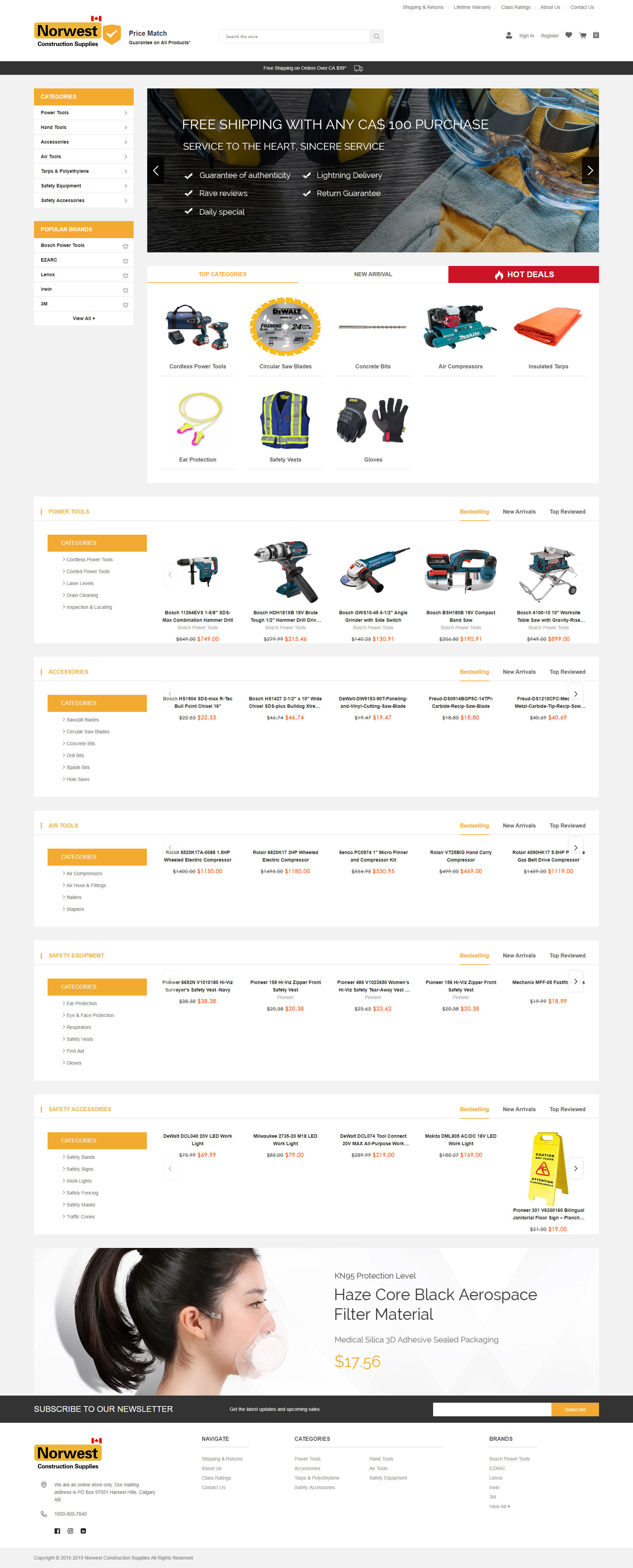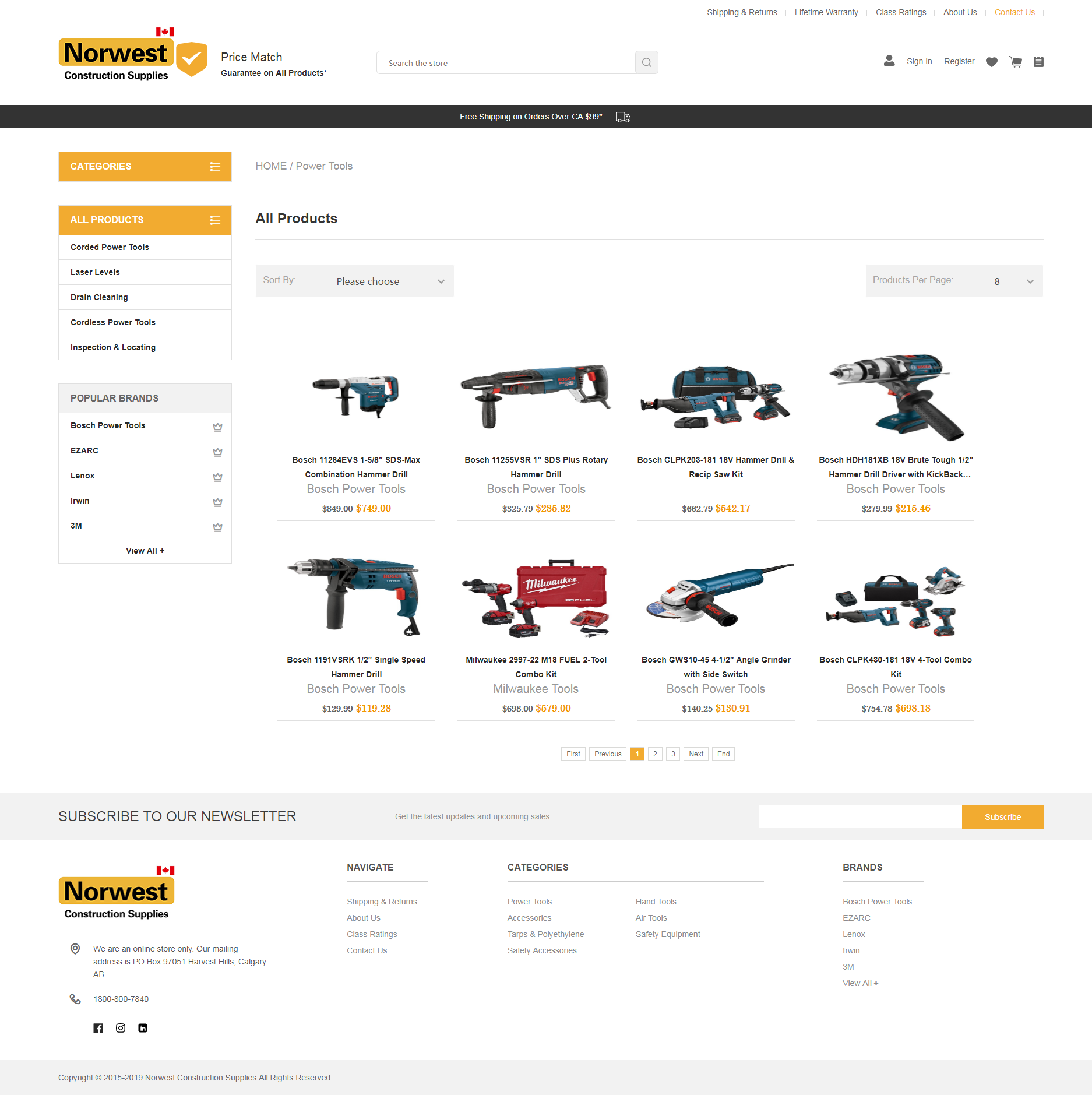 Norwest Construction Supplies provides various tools, safety apparel, workwear and rain gear at wholesale prices. We offer power tools, hand tools, air tools, tarps and polyethylene products and various accessories. For safety apparel, we offer fire resistant, hi-vis, water proof and water resistant jackets, vests, hoodies, boots, overalls, gloves, and headwear. Orders placed and processed before 10 a.m. Mountain time will typically be picked up by a courier the same day. Most orders arrive within 1 to 2 business days based on proximity to the warehouse. Our warehouses are located in B.C, Alberta and Ontario so you can get your order fast.