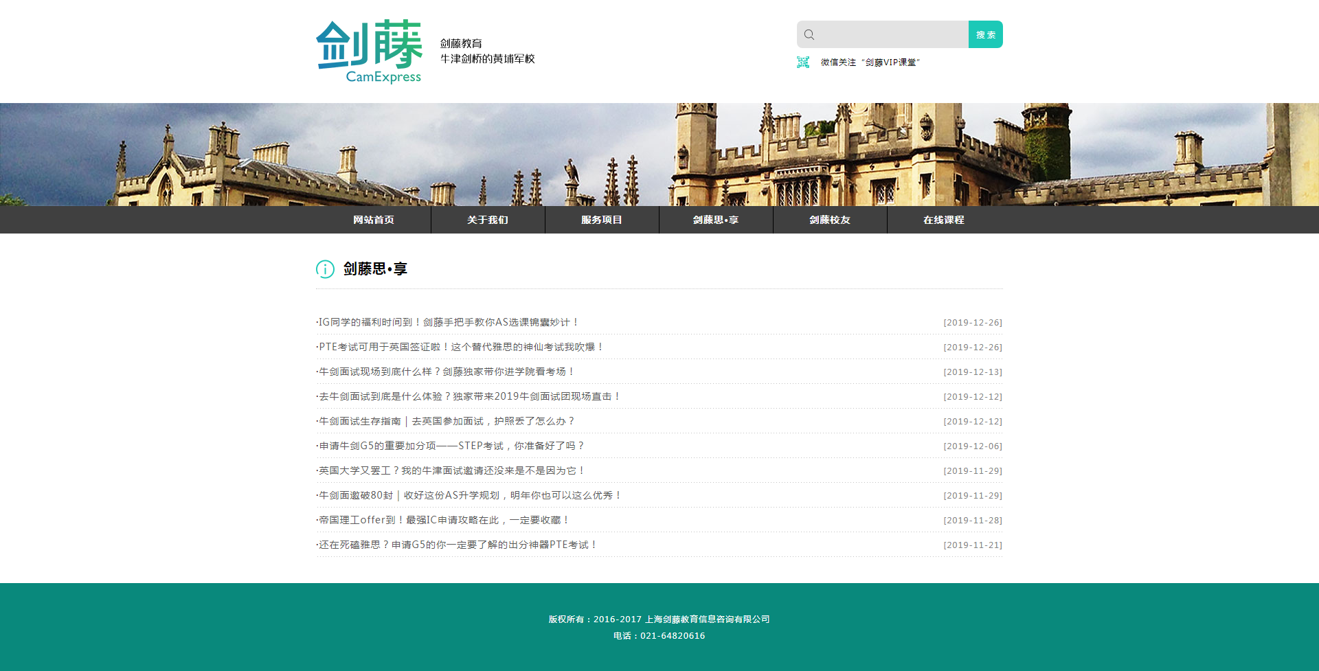 剑藤教育专注于针对英联邦及北美顶级名校申请的英语、学术课程研发、留学咨询,多年来通过核心项目——牛剑项目及美国培优项目提供符合中国学生特点及国外顶级名校要求的专业教学及咨询。作为国内最早、最成熟的牛剑项目,剑藤教育自2008年以来,已成功帮助150余名优秀学生拿到牛津、剑桥大学的录取,并在过程中积累了大量基于国内现有国际课程体系基础上的培优课程与学术拓展项目的运作经验。