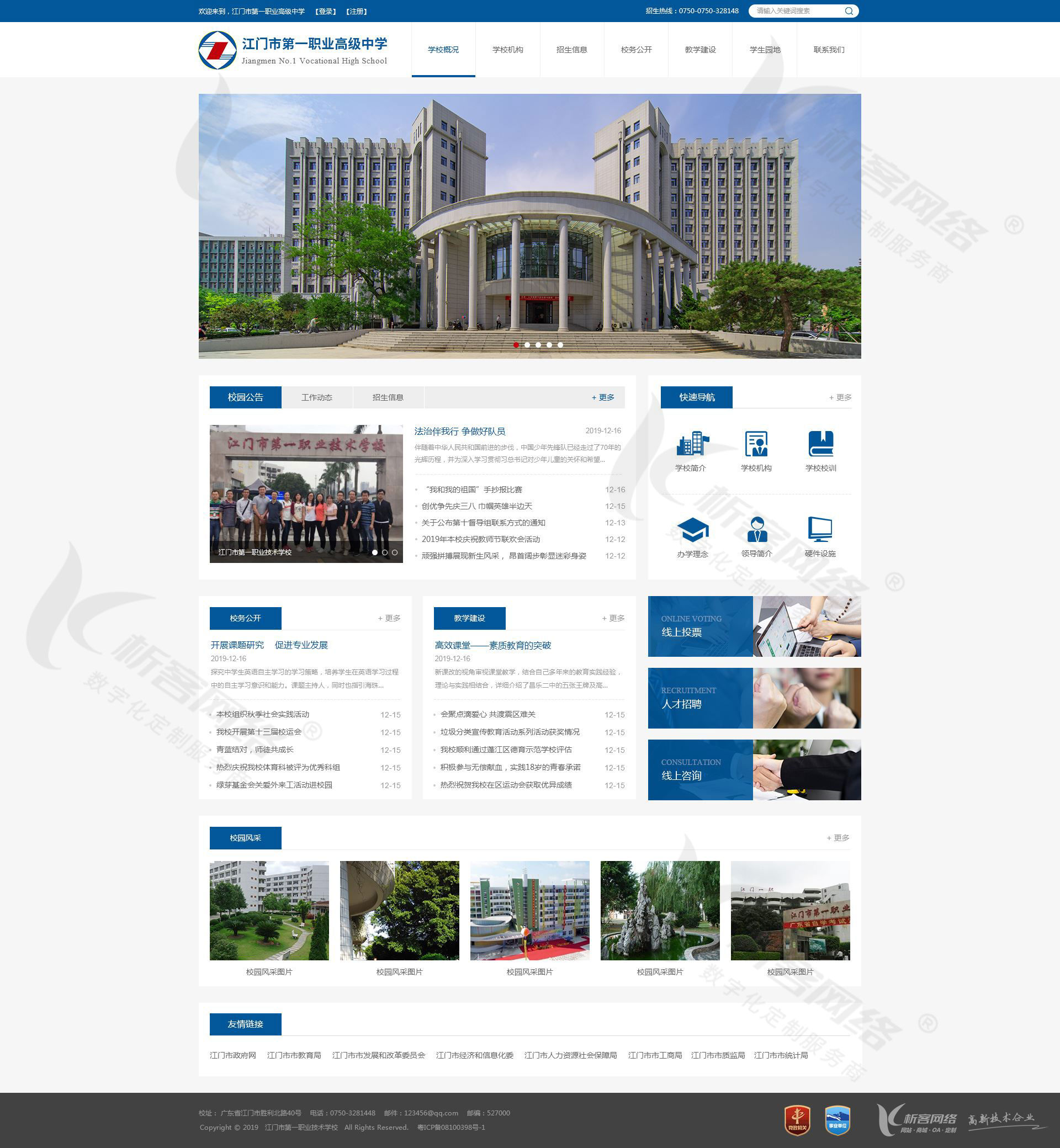 江门市第一职业高级中学是1980年经政府批准成立,以培养初、中级技术人才为主的全日制公办中等职业学校,隶属于广东省江门市政府。学校办学规模大、师资力量雄厚、设备配套完善、办学整体实力强,是首批国家级重点职中,是广东省职业教育先进单位。