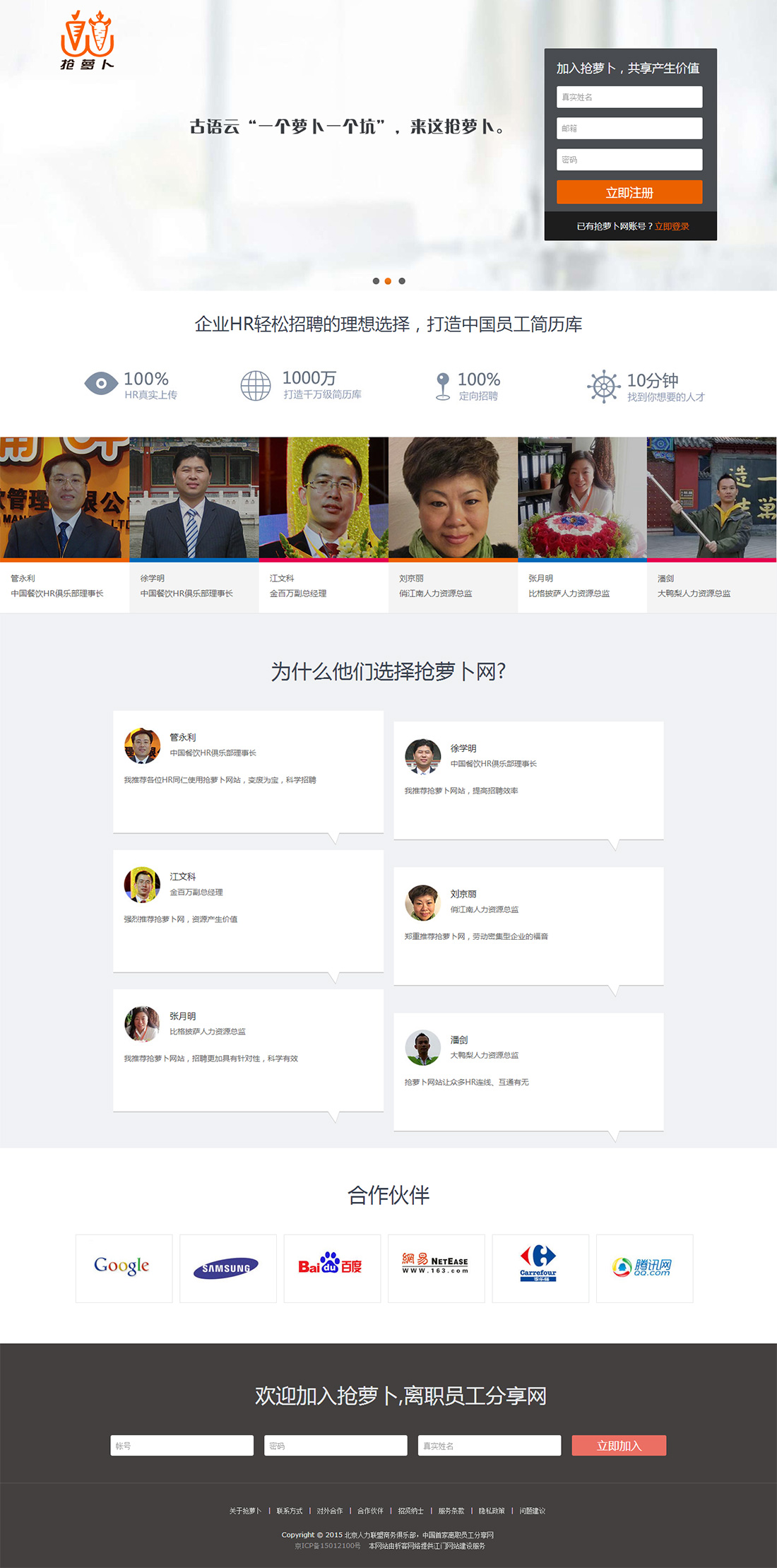 抢萝卜,中国首家离职员工分享网,企业HR轻松招聘的理想选择,打造中国员工简历库
