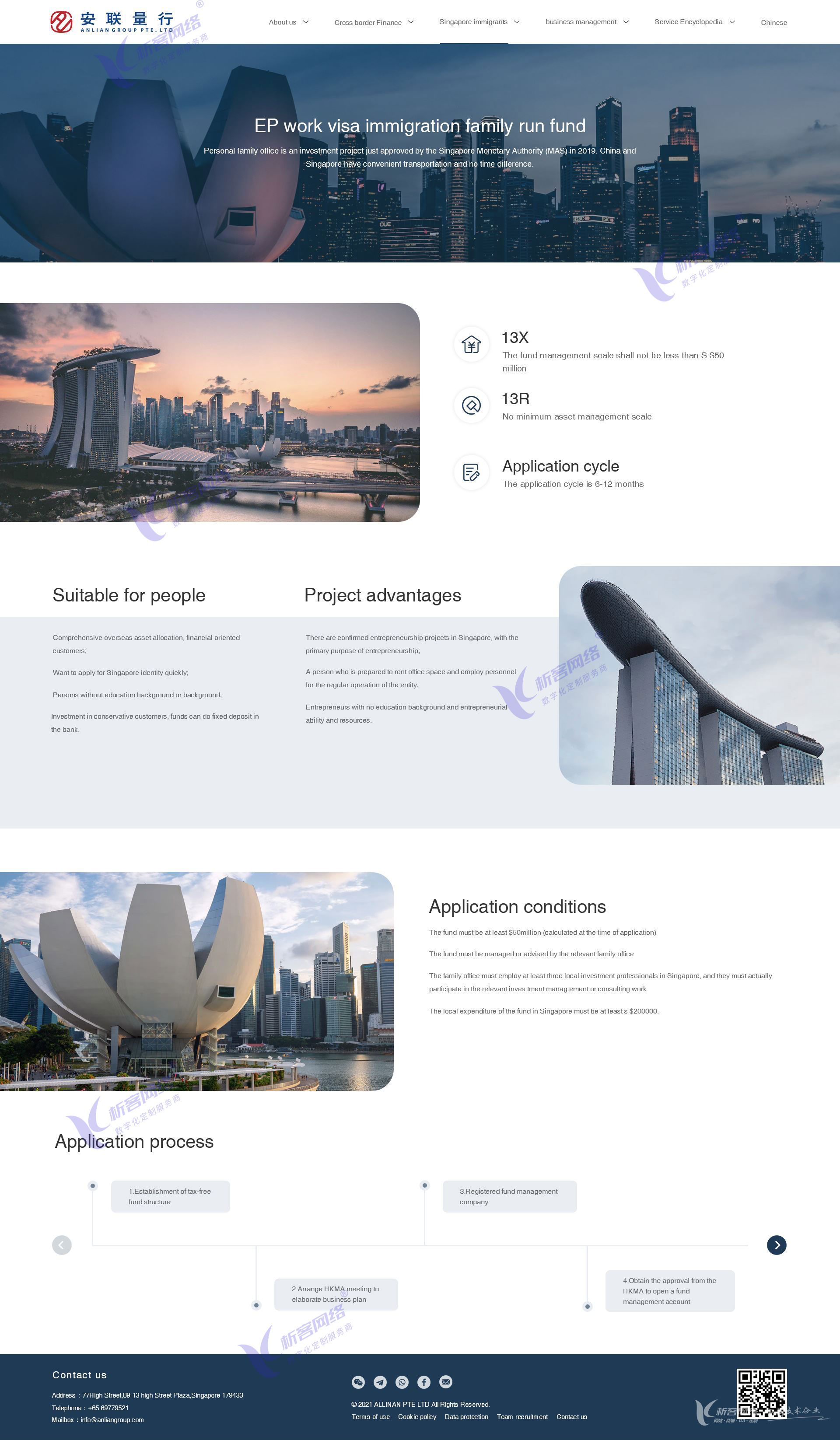 安联量行集团是综合跨境服务领域的领航机构,总部设立于新加坡CBD中心,以国际化理念服务于中国、东南亚、大洋洲、欧洲、北美洲等三十余国家和地区的精英阶层,在中国北京、马来西亚吉隆坡、英国伦敦、爱尔兰都柏林设有分公司。业务范围覆盖新加坡、香港、纽约等金融中心。安联量行集团一直致力于为全球的精英阶层提供“安家置业,联通世界”的跨境服务解决方案。从合理税务筹划、海外身份规划、资产保值增值、全球生意布局、子女海外教育等方面出发,不断为想要实现全球梦的精英们提供多元化产品选择,业务包含移民、企业管理、跨境金融、房产、教育等领域。安联量行集团的精英律师团队和专业文案团队多年来一直与新加坡政府保持着良好关系与沟通,能够设身处地为客户利益着想,量身定制方案,为客户的全球布局保驾护航。