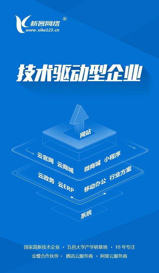 2018年,我们重新定位析客为信息化技术驱动型企业,坚定不移的发展技术核心的路线,任何有助于通过信息化发展管理或运作的创新模式,都将是我们的主营业务,新征程的主营业务:云官网、云商城、云政务、云ERP、移动办公、智能数据对接、行业信息化等深度信息化服务。