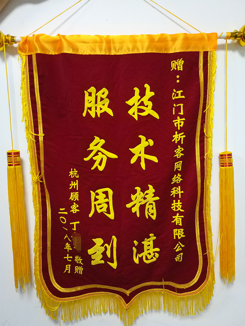 丁总送的锦旗不仅仅是一种荣誉,更是客户朋友对析客网络工作态度的肯定和认可,是让我们析客网络向更高的目标迈进的强大动力。