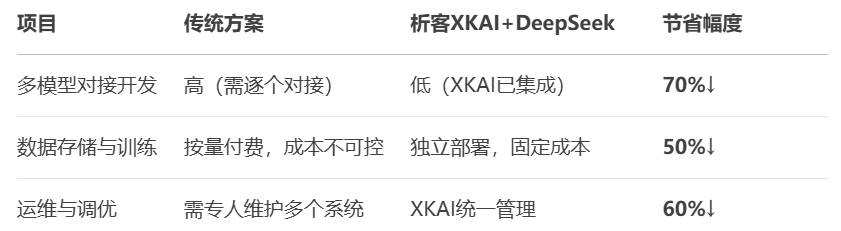 成本对比:传统方案 vs 析客XKAI + DeepSeek
