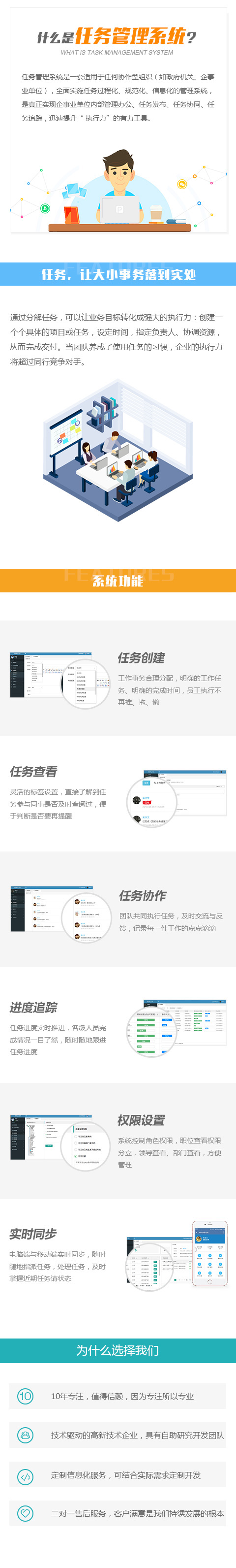 任务管理系统是一套适用于任何协作型组织(如政府机关、企事业单位),全面实施任务过程化、规范化、信息化的管理系统,是真正实现企事业单位内部管理办公、任务发布、任务协同、任务追踪,迅速提升“ 执行力”的有力工具。