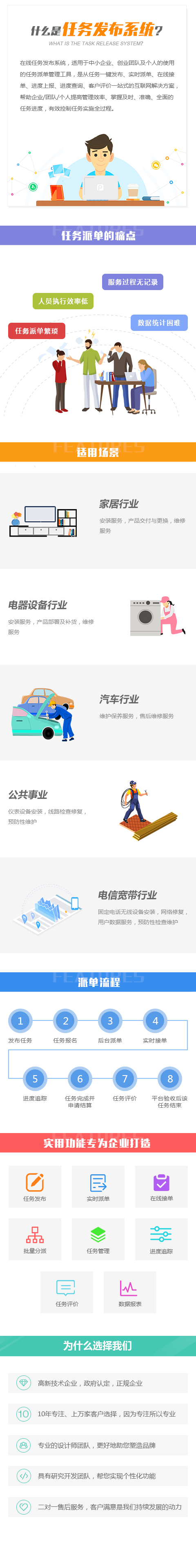 在线任务发布系统,适用于中小企业、创业团队及个人的使用的任务派单管理工具,是从任务一键发布、实时派单、在线接单、进度上报、进度查询、客户评价一站式的互联网解决方案,帮助企业/团队/个人提高管理效率、掌握及时、准确、全面的任务进度,有效控制任务实施全过程。