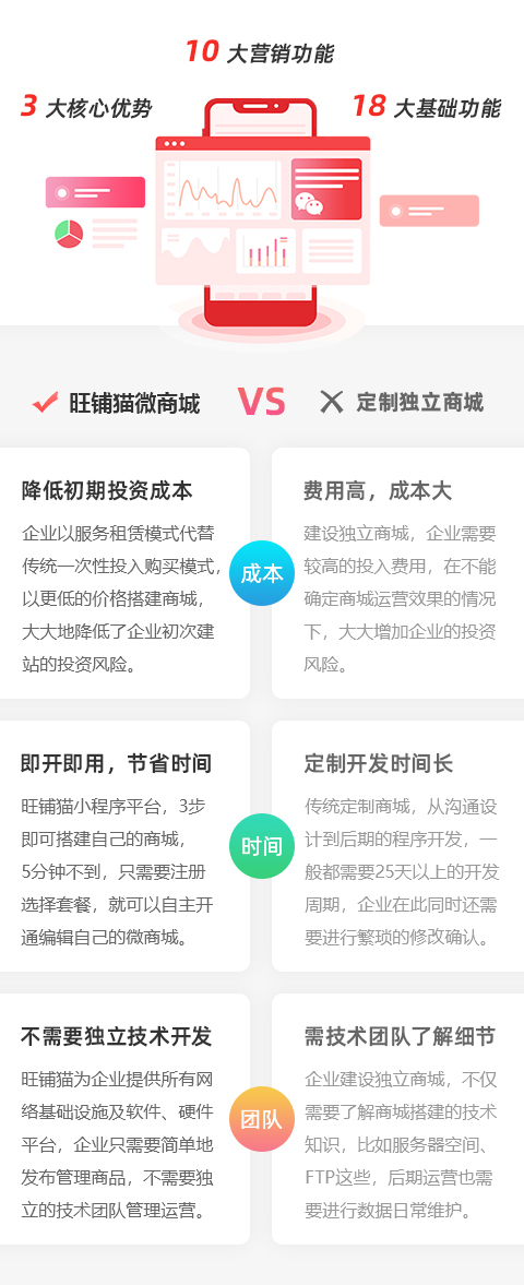 可独立部署定制开发,随着企业的发展,必然出现个性化定制需求,市面上的商城平台是无法实现数据独立或者定制扩展,可选择旺铺猫定制版支持独立部署、数据同步、定制开发;避免数据丢失,无法定制扩展的困窘!