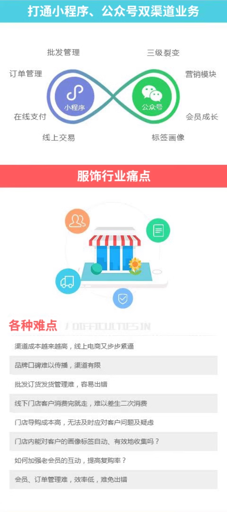 服装行业利用微信平台、打造微信商城系统来销售产品的同时,也进行普及服装品牌的知识,提高用户的活跃度以及推送附近门店或者节假日的优惠活动,更容易让消费者微商城变成铁粉。