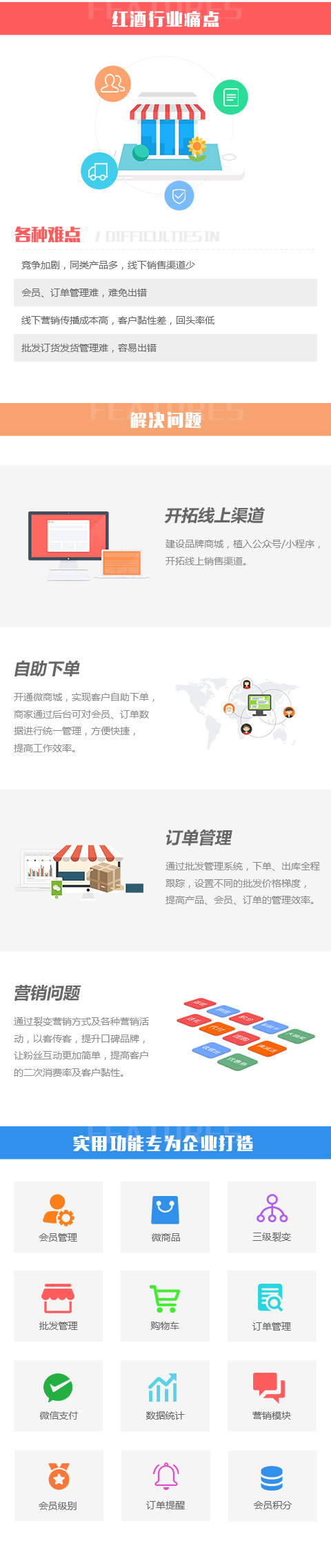 酒类行业市场大,线上市场呈高速增长趋势,有很大的发展空间。连接线上线下销售渠道,为消费者提供便利的多元化的购物方式,与小程序商城达成数据互通 ,并结合互联网+理念与思维,从客户体验出发,共同建设了一个酒类商城购物系统—酒业商城网站。