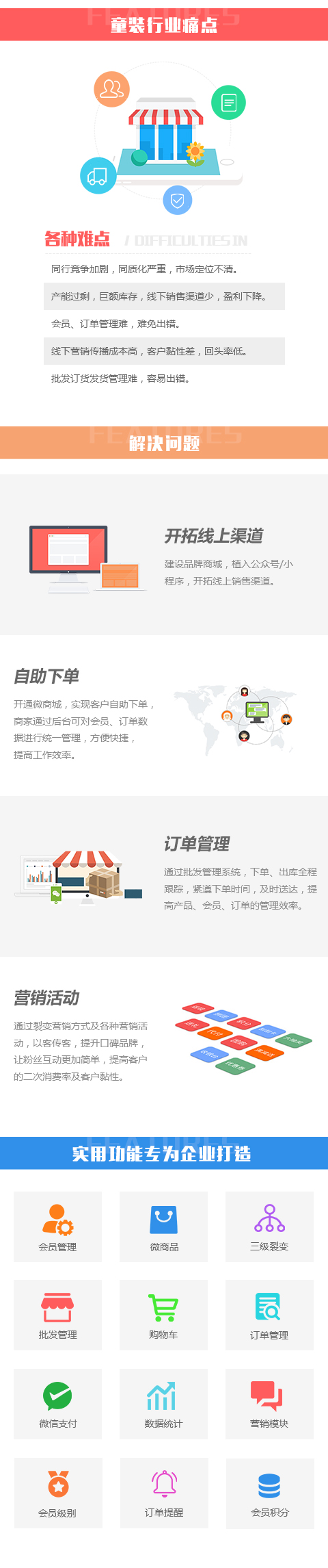 开通微商城,实现客户自助下单,商家通过后台可对会员、订单数据进行统一管理,方便快捷,提高工作效率。