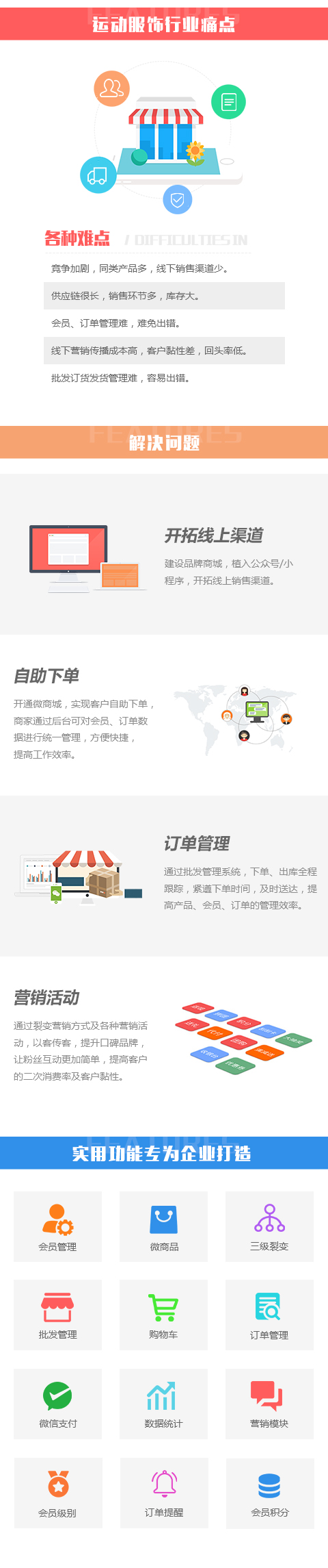 开通微商城,实现客户自助下单,商家通过后台可对会员、订单数据进行统一管理,方便快捷,提高工作效率。
