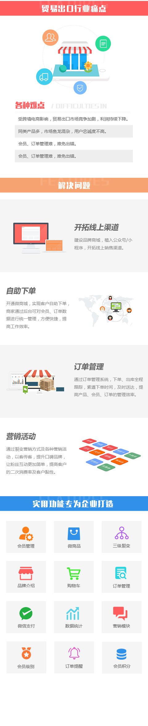 开通微商城,实现客户自助下单,商家通过后台可对会员、订单数据进行统一管理,方便快捷,提高工作效率。