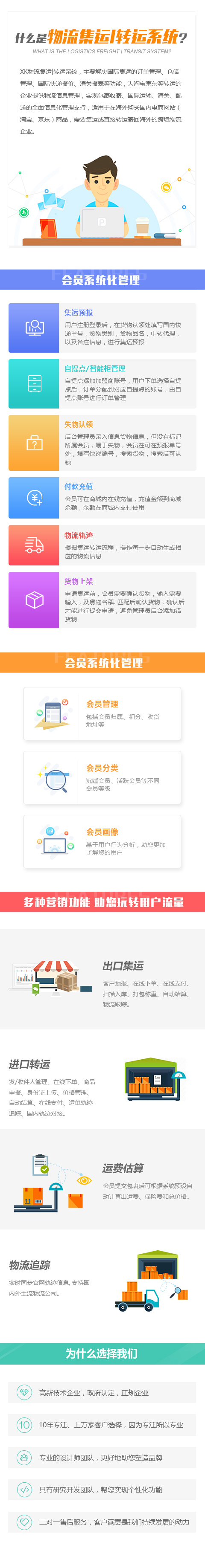 客户预报、在线下单、在线支付、扫描入库、打包称重、自动结算、物流跟踪。