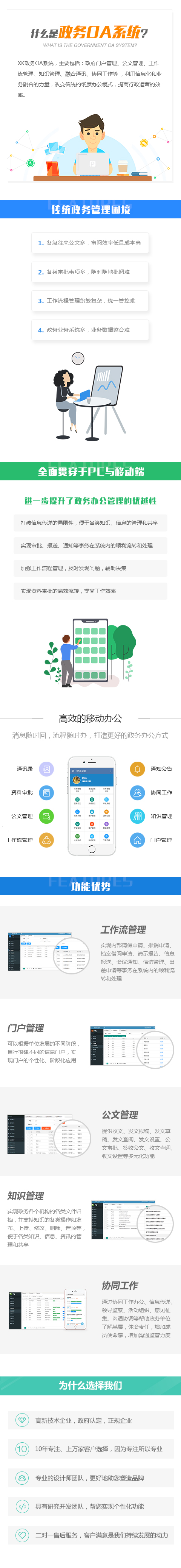 XK政务OA系统,主要包括:政府门户管理、公文管理、工作流管理、知识管理、融合通讯、协同工作等 ,利用信息化和业务融合的力量,改变传统的纸质办公模式,提高行政运营的效率。