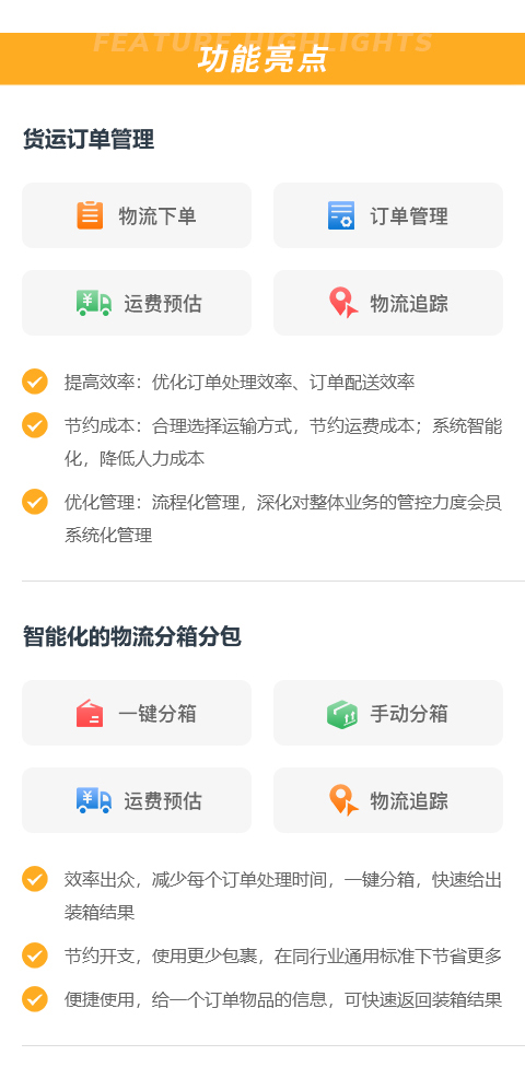 物流下单 订单管理 运费预估 物流追踪 (搭配小图标)
