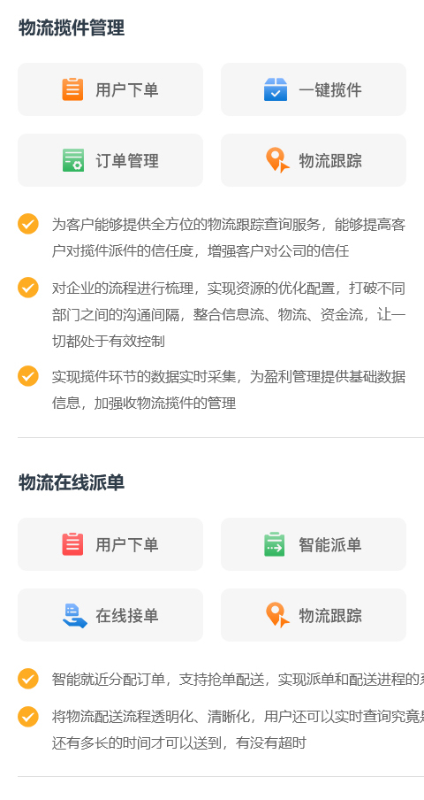 用户下单 一键揽件 订单管理 物流跟踪 (搭配小图标)