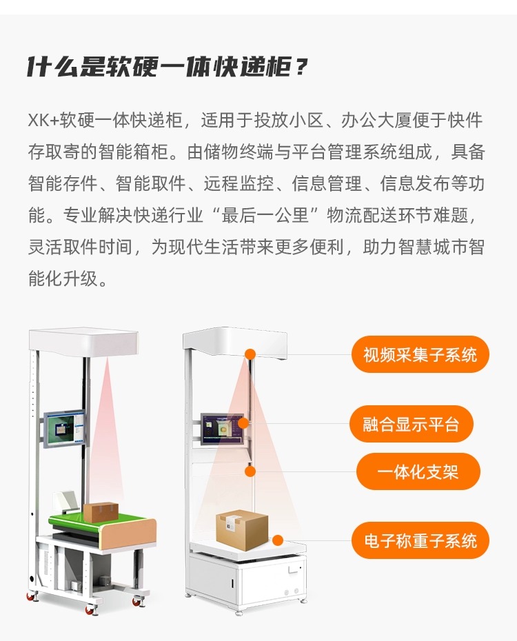 XK+软硬一体快递柜,适用于投放小区、办公大厦便于快件存取寄的智能箱柜。由储物终端与平台管理系统组成,具备智能存件、智能取件、远程监控、信息管理、信息发布等功能。专业解决快递行业“最后一公里”物流配送环节难题,灵活取件时间,为现代生活带来更多便利,助力智慧城市智能化升级。