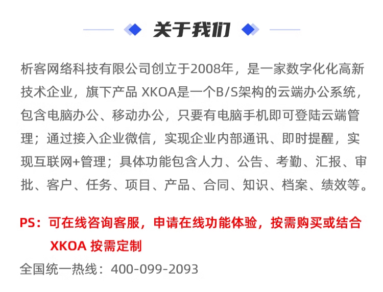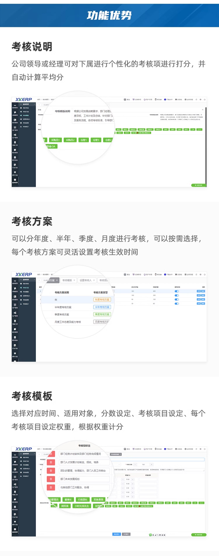 XKOA-绩效考核系统,帮助企业将目标分解并落实到个人,将目标管理与绩效评估体系相融合,方便人事推进员工绩效考评工作,提供灵活的绩效考核流程设置和管理机制,支持自定义考核指标和考核对象,真正地帮助企业落实每一项绩效考核工作,提升员工的绩效和执行力。