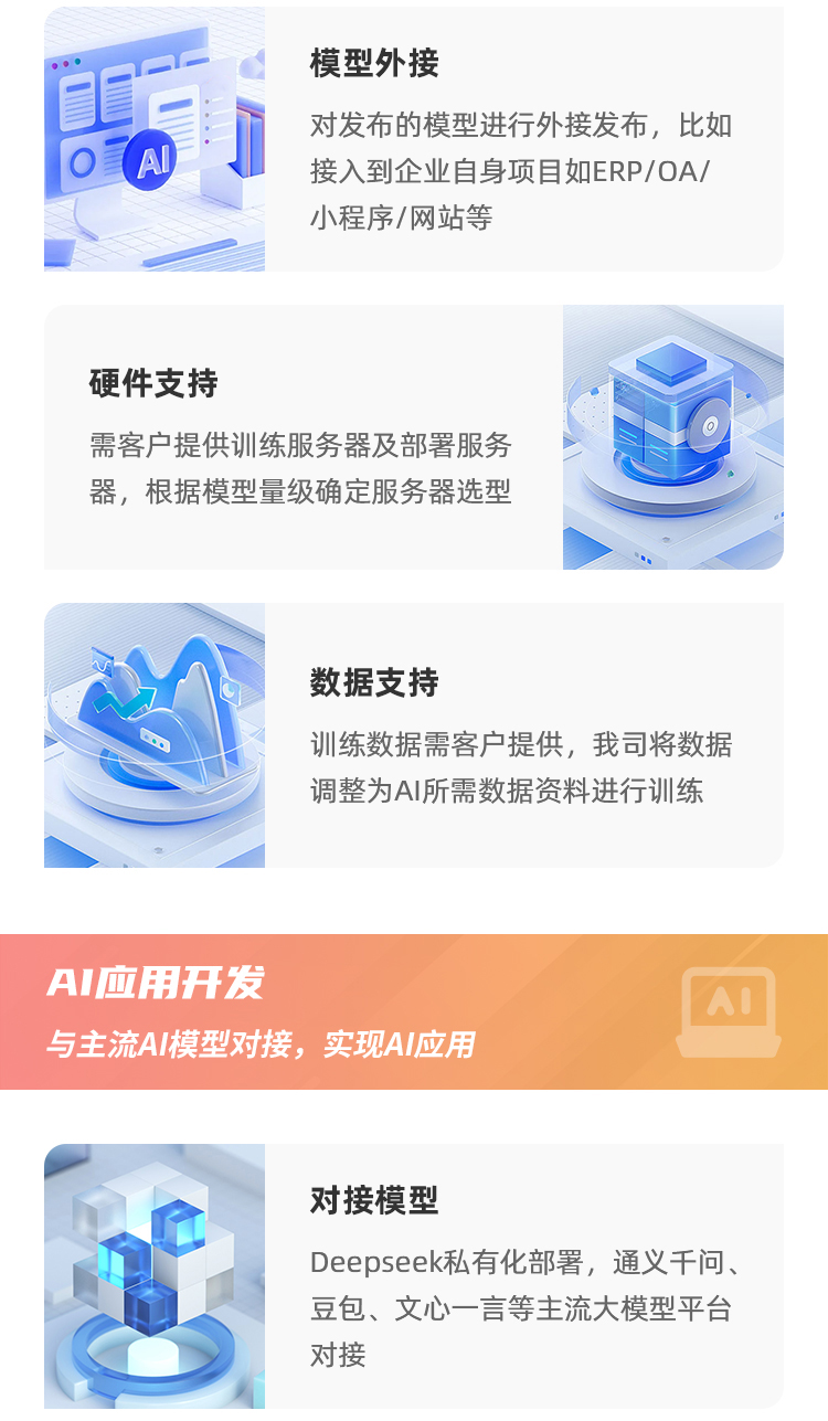 硬件支持:需客户提供训练服务器及部署服务器,根据模型量级确定服务器选型;