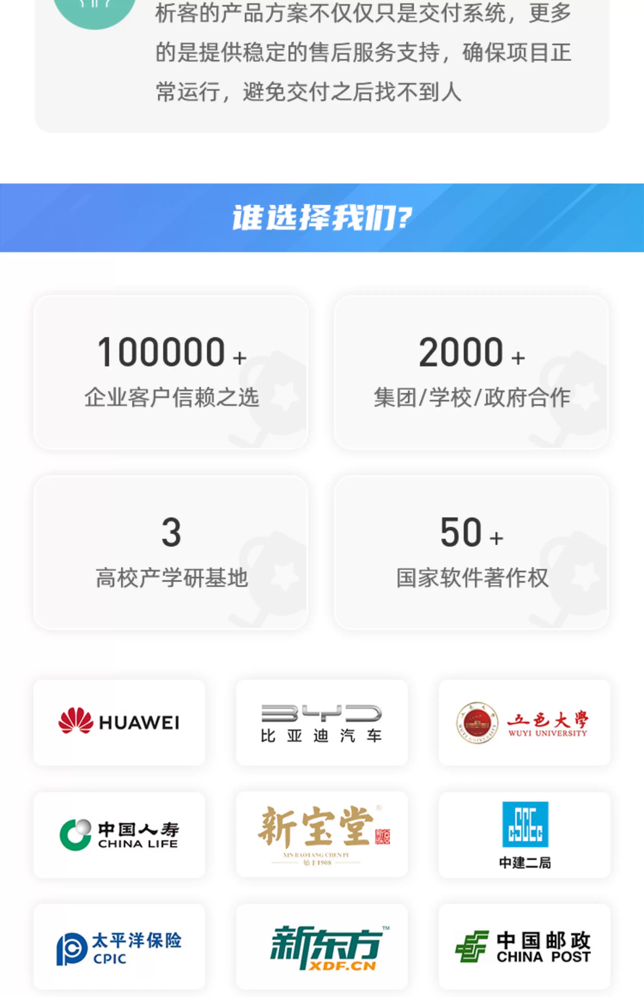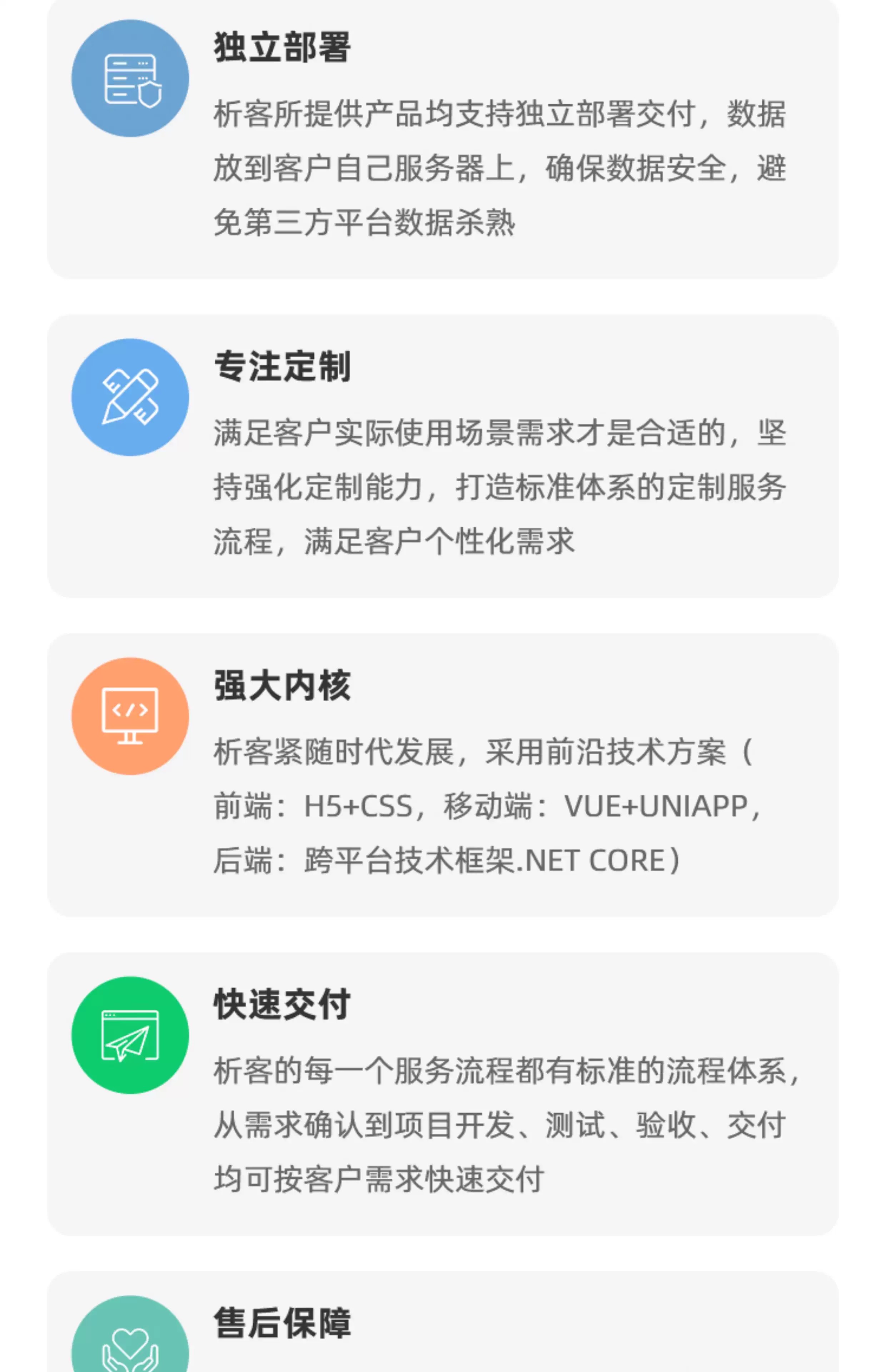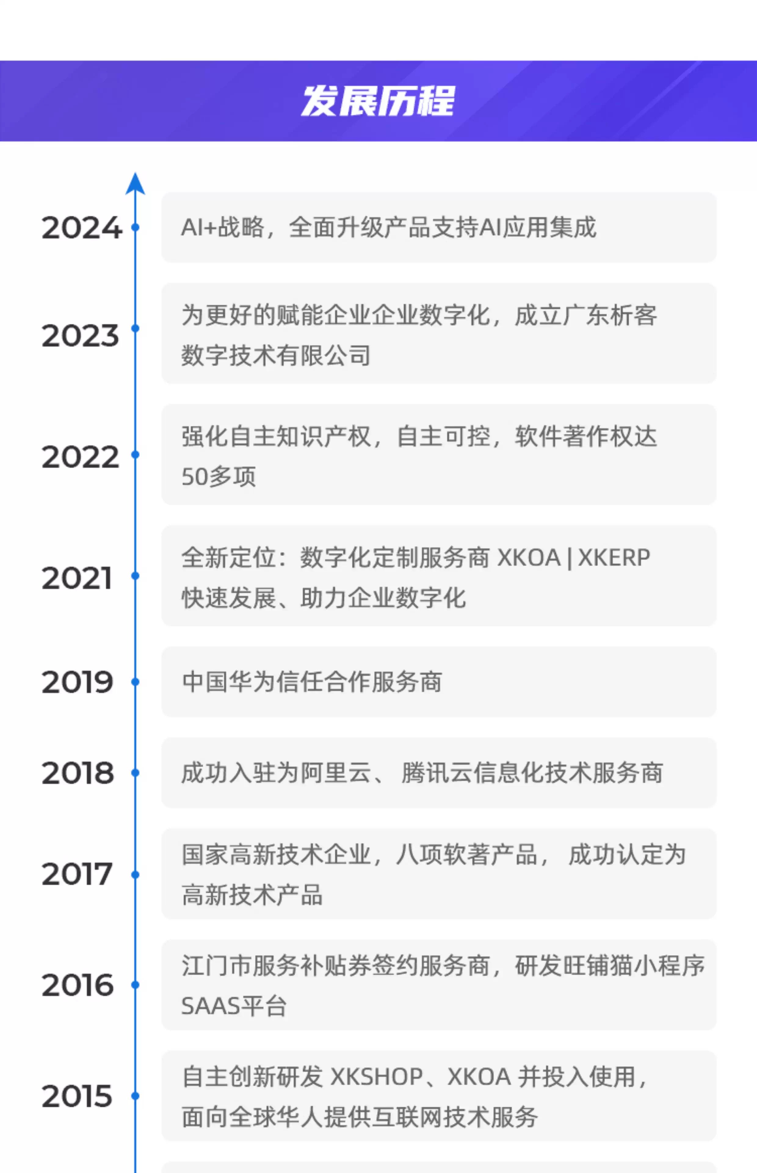 析客网络创立于2008年,是一家高新技术企业,专注为企业提供可定制的数字化解决方案,助力实现对内对外的信息化经营。旗下自主研发产品包含XKCMS(云官网)、XKSHOP(云商城)、XKOA(移动办公)、XKERP(管理系统)、旺铺猫SAAS商城、XK+(行业解决方案), 均可结合客户实际需求进行定制开发,已为上万家企事业单位提供服务。