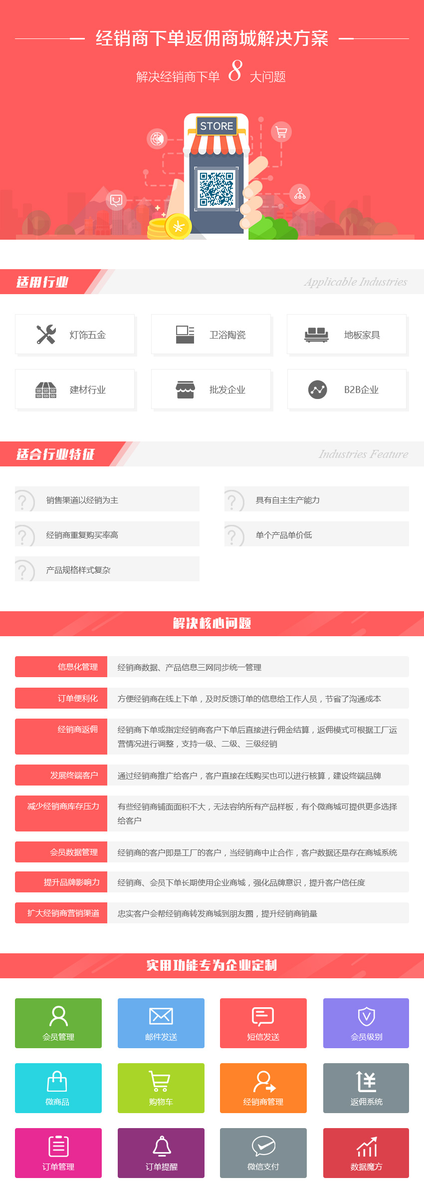 Product & Solution方案介绍:经销商加盟 下单 管理系统、三网一体化的商城解决方案。