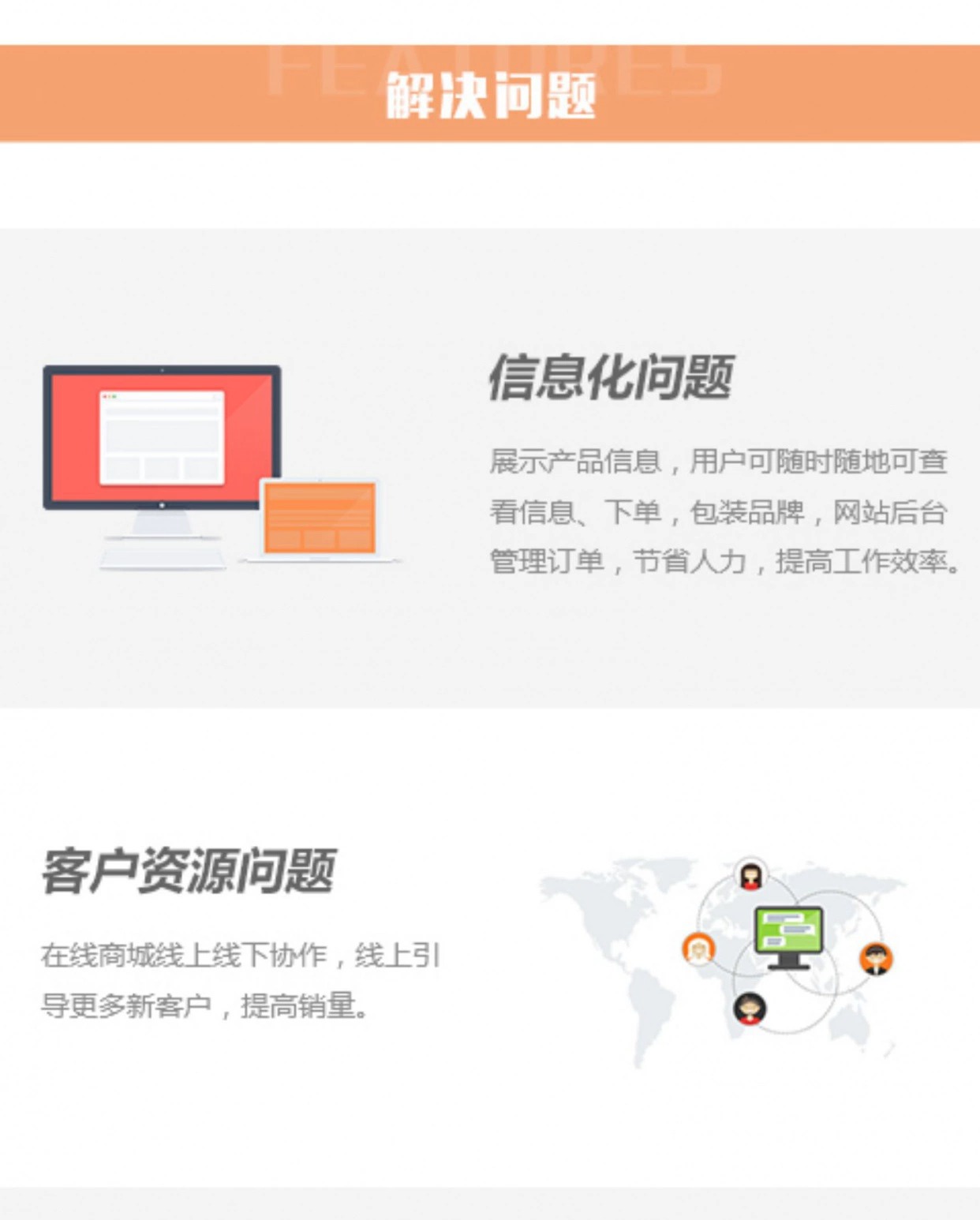 1、信息化问题:展示产品信息,用户可随时随地可查看信息、下单,包装品牌,网站后台管理订单,节省人力,提高工作效率。