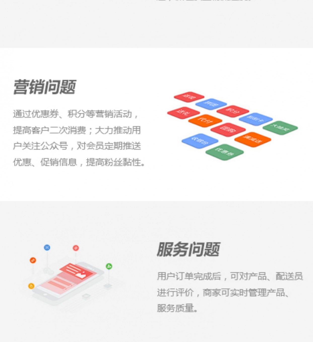 4、服务问题:用户订单完成后,可对产品、配送员进行评价,商家可实时管理产品、服务质量。