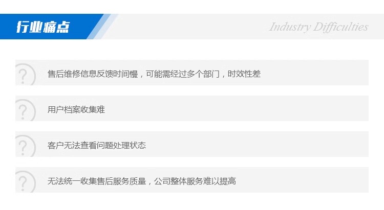 4、无法统一收集售后服务质量,公司整体服务难以提高。