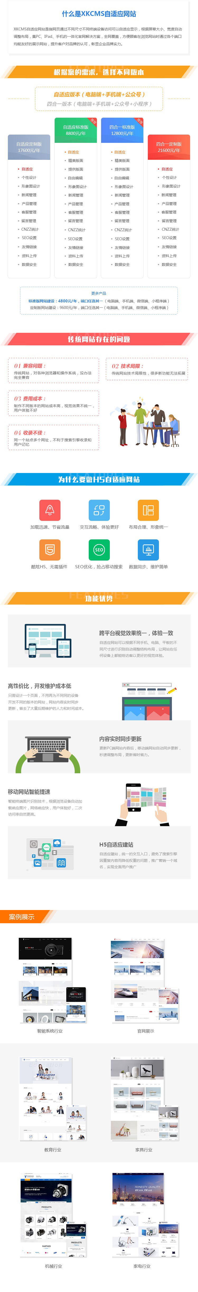 XKCMS自适应网站是指网页通过不同尺寸不同终端设备访问可以自适应显示,根据屏幕大小、宽度自动调整布局,集PC、IPad、手机的一体化官网解决方案,全网覆盖,方便顾客在浏览网站时通过各个端口均能友好的展示网站,提升客户对品牌的认可,彰显企业品牌实力。