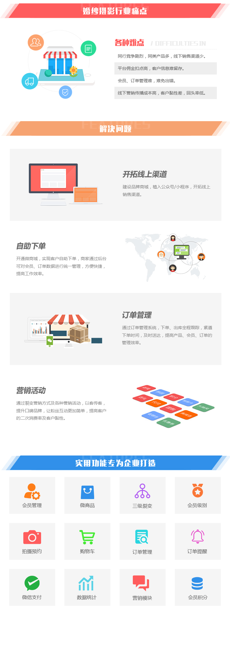 开通微商城,实现客户自助下单,商家通过后台可对会员、订单数据进行统一管理,方便快捷,提高工作效率。