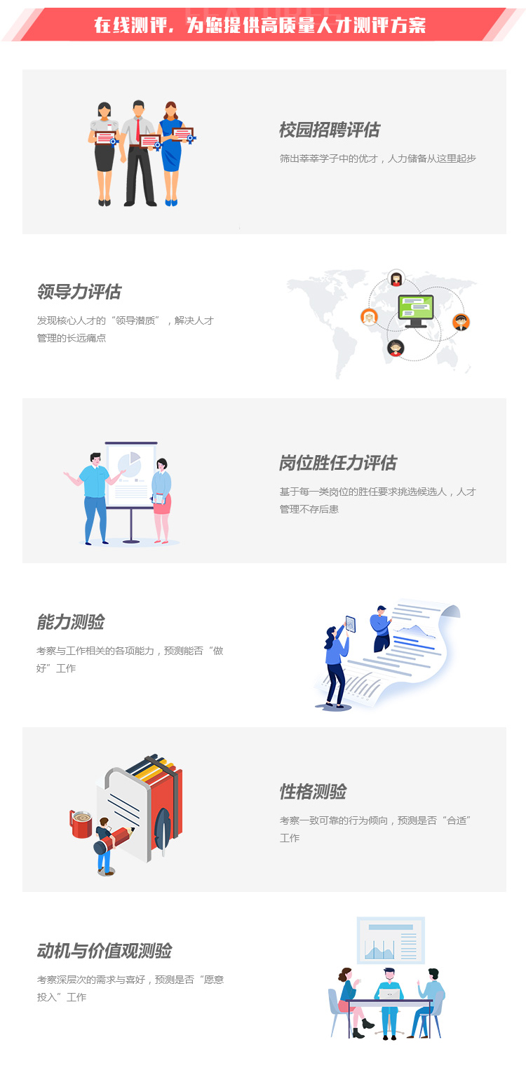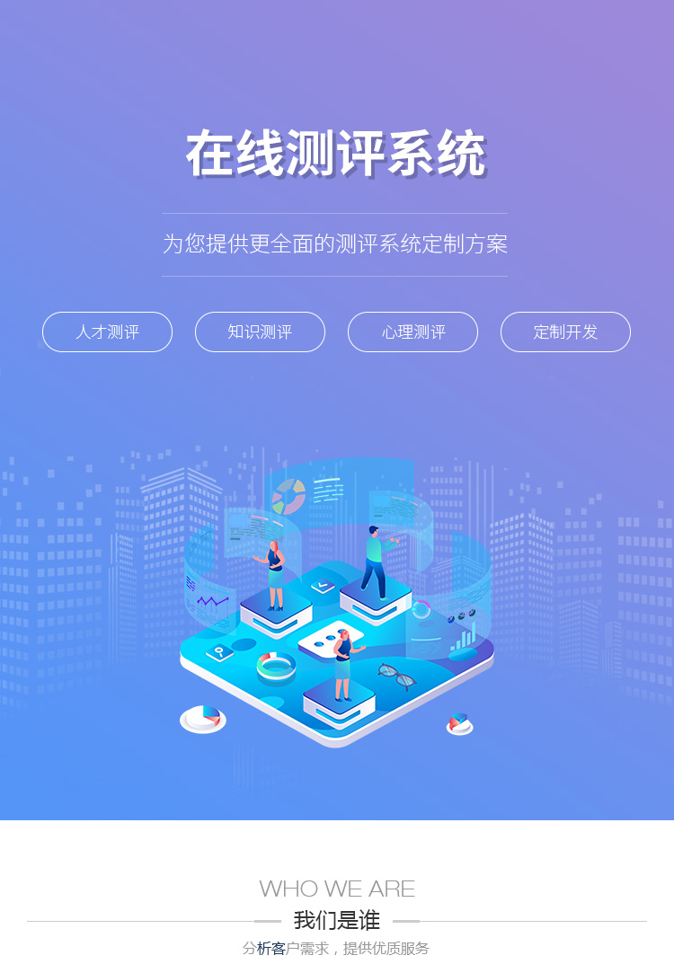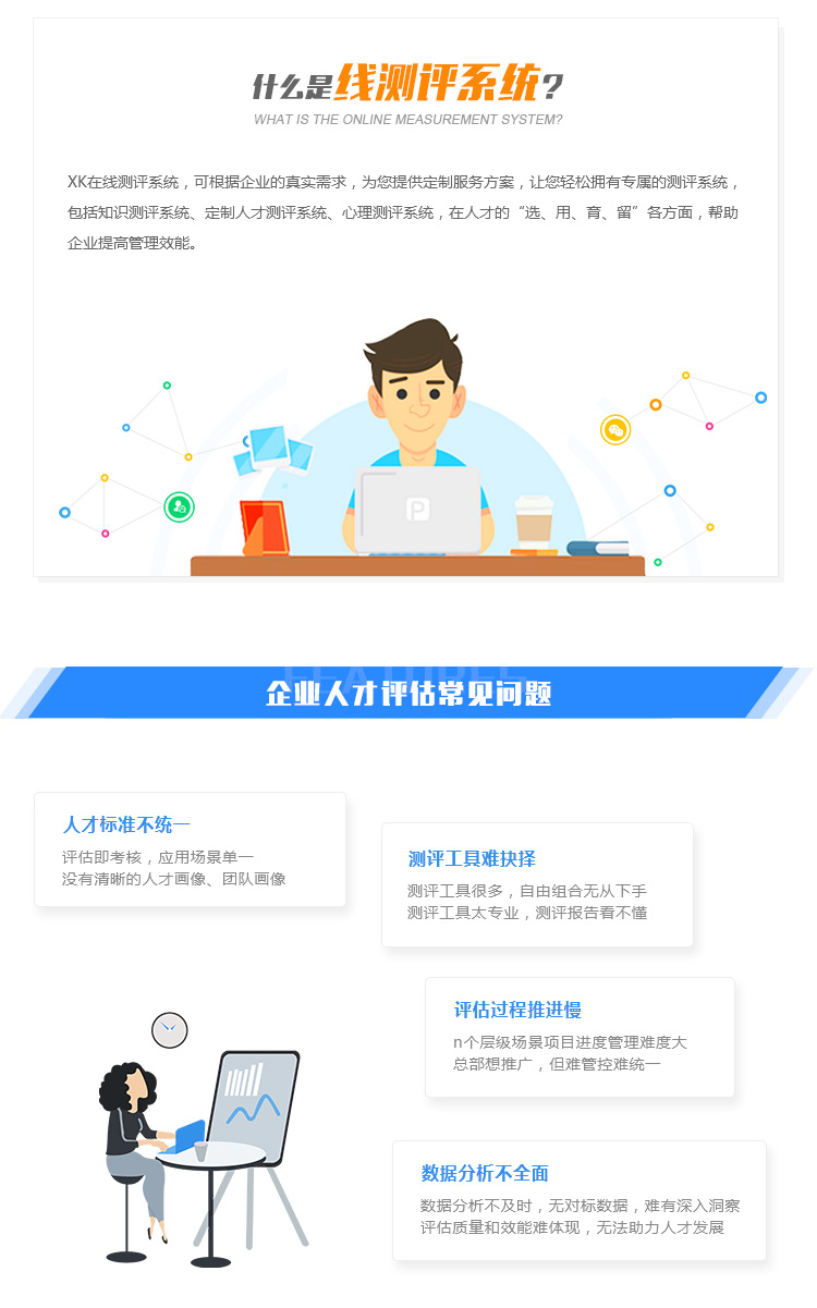 XK在线测评系统,可根据企业的真实需求,为您提供定制服务方案,让您轻松拥有专属的测评系统,包括知识测评系统、定制人才测评系统、心理测评系统,在人才的“选、用、育、留”各方面,帮助企业提高管理效能。