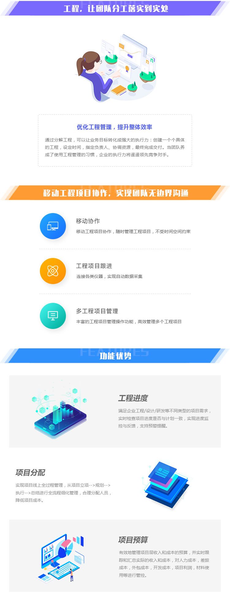 通过分解工程,可以让业务目标转化成强大的执行力:创建一个个具体的工程,设定时间,指定负责人、协调资源,最终完成交付。当团队养成了使用工程管理的习惯,企业的执行力将遥遥领先竞争对手。