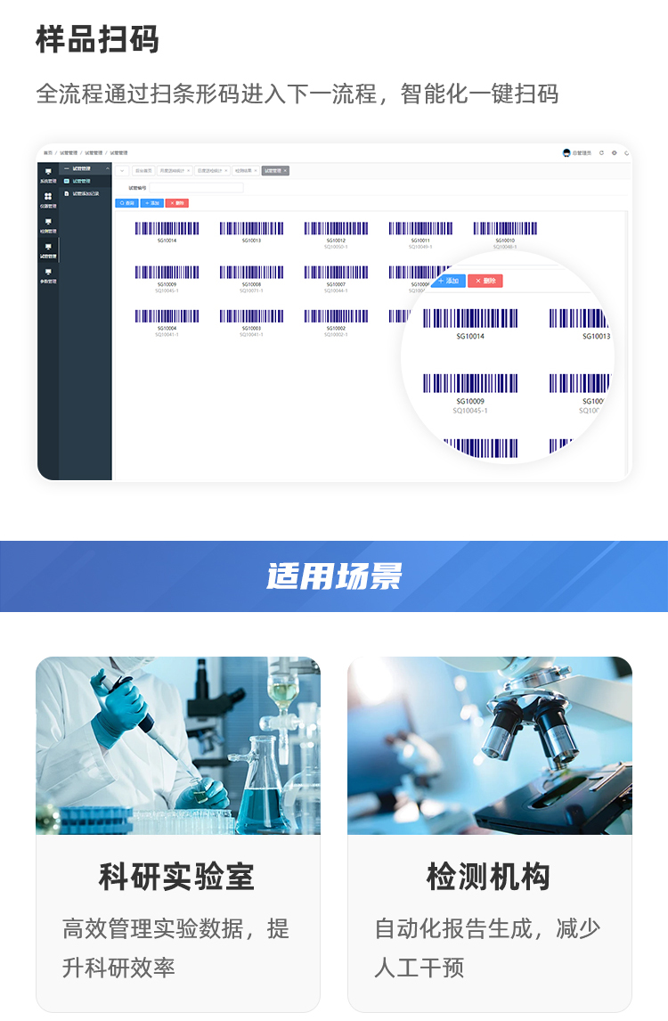 l 样品扫码:全流程通过扫条形码进入下一流程,智能化一键扫码。