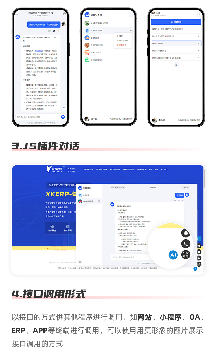 l AI 客服:与 XKAI 协同,AI 依网站内容快速解答用户问题,还可按指定知识话术精准回应。